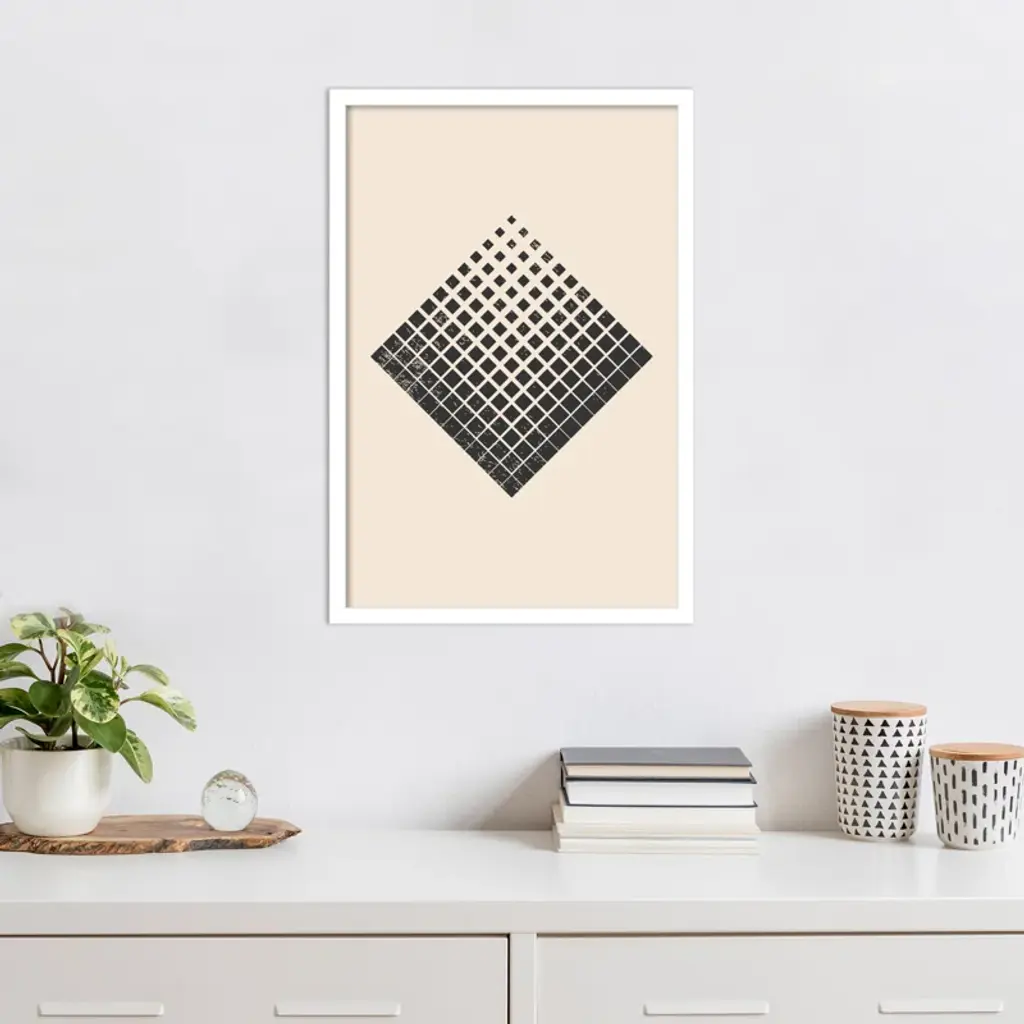 Bring contemporary abstract art into your home with this unique piece by artist Jay Stanley. " Minimal Halftone Shapes No 3," a single print featuring a captivating graphic art technique, is perfect for adding a modern touch to any space.