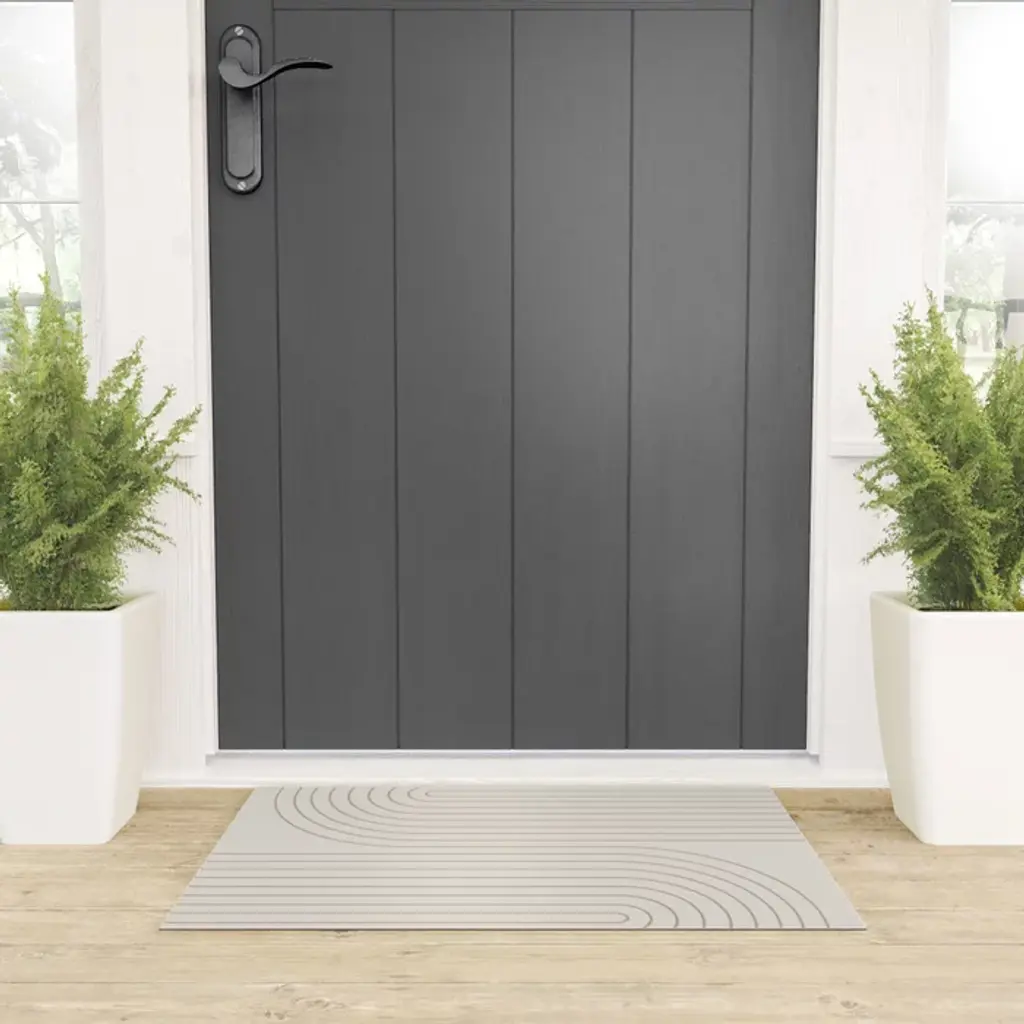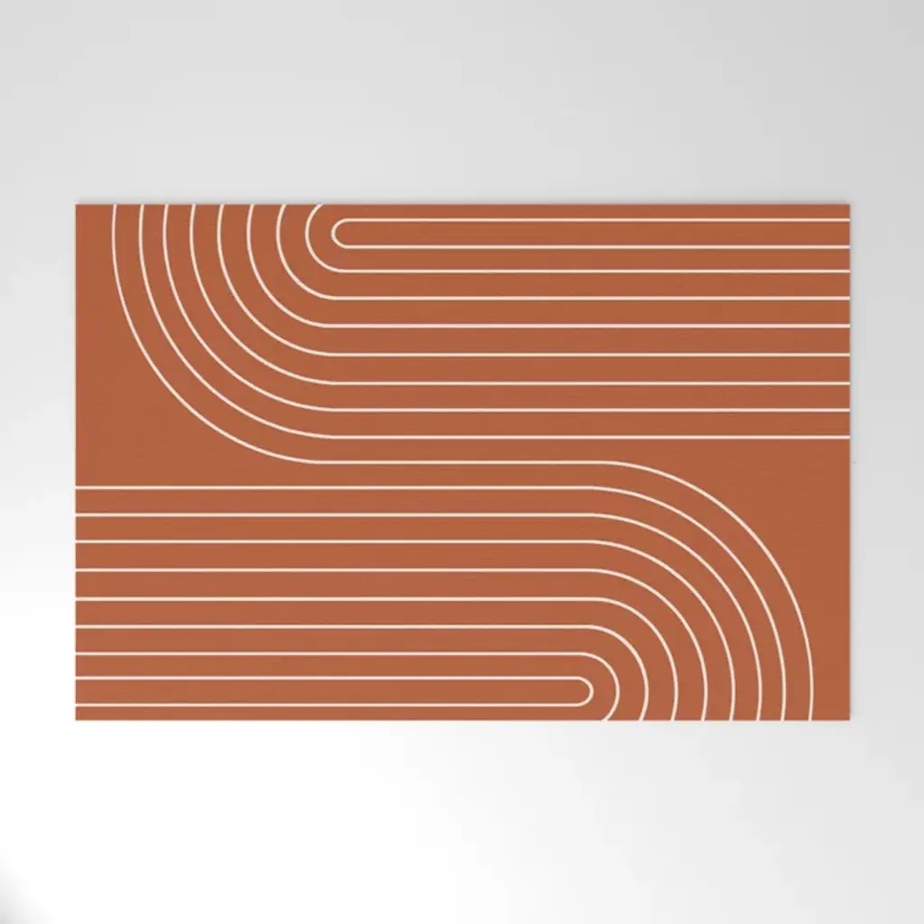 Minimal Line Curvature V Natural Neutral Mid Century Modern Arch Abstract Welcome Mat