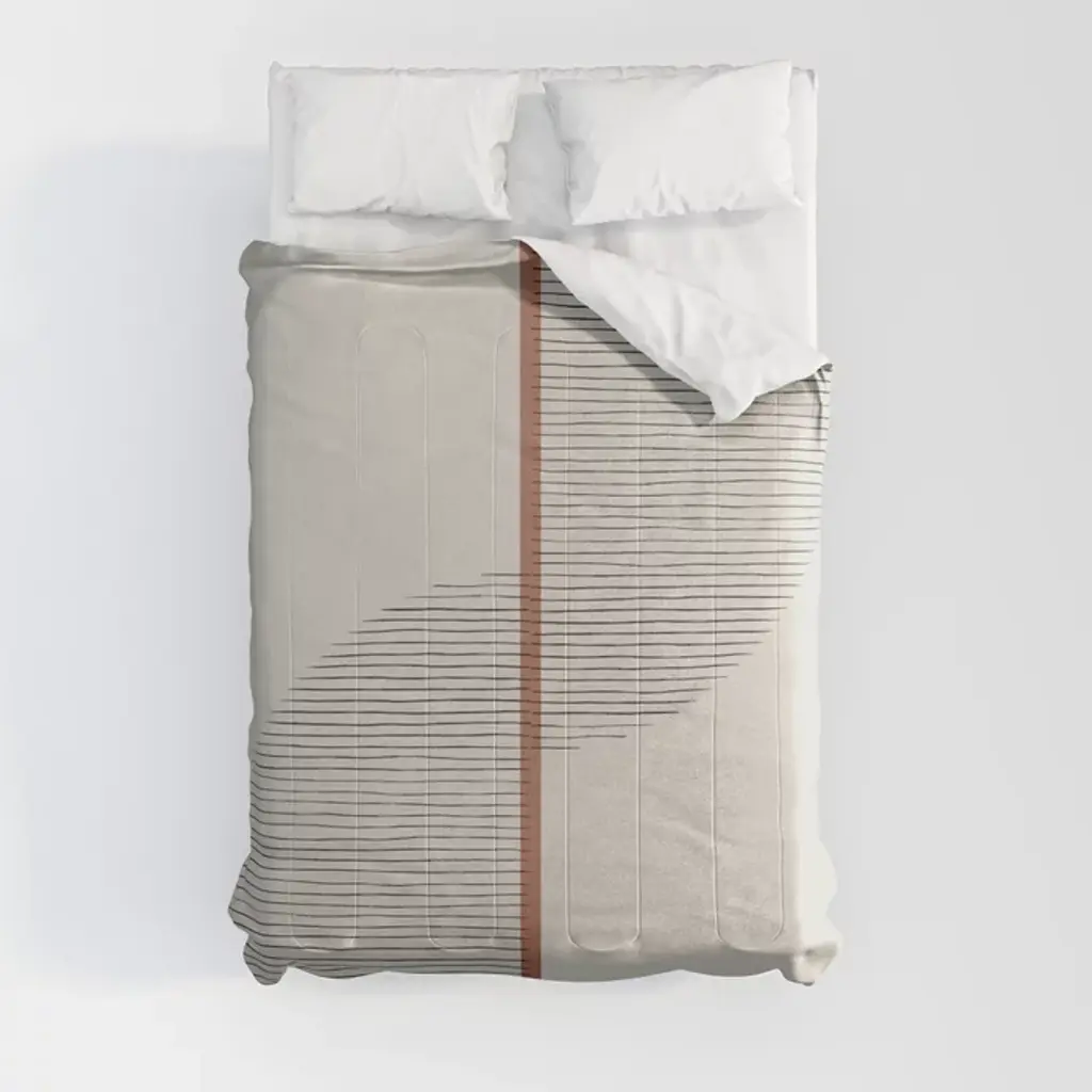Minimal Line Curvature Vii Sage Green Mid Century Modern Arch Abstract Comforter