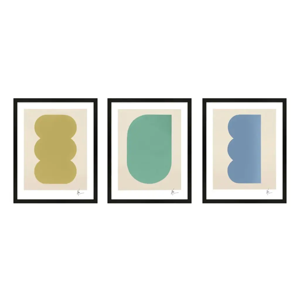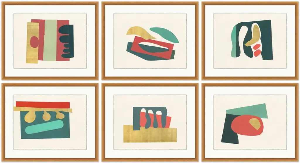 A variety of whimsical figurative and garden elements mesh in unique harmony. Matted in white and framed in a sleek champagne gold wood.