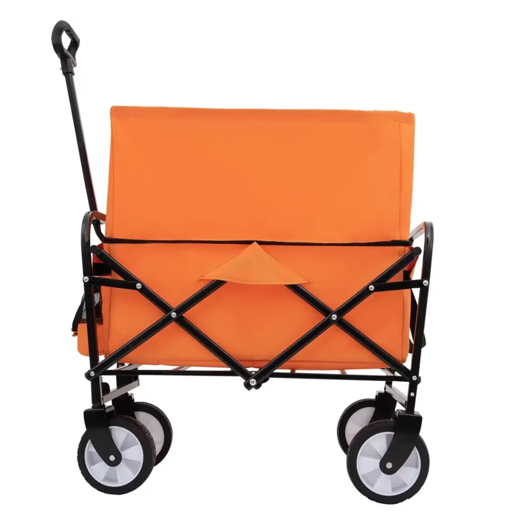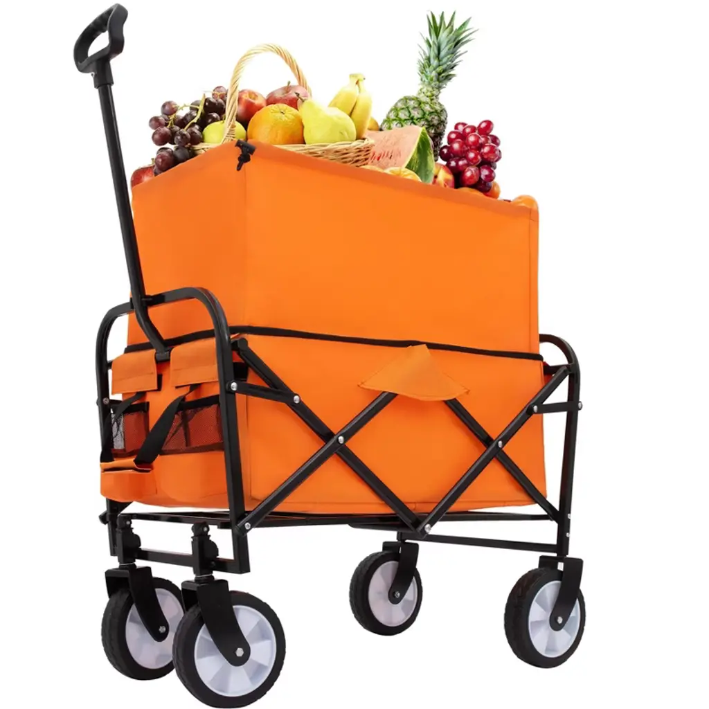 Minimeetall Strap Collapsible Foldable Wagon Cart Beach Wagon Heavy Duty Utility Cart Utility Wagon Grocery Cart Orange