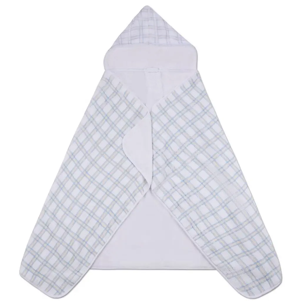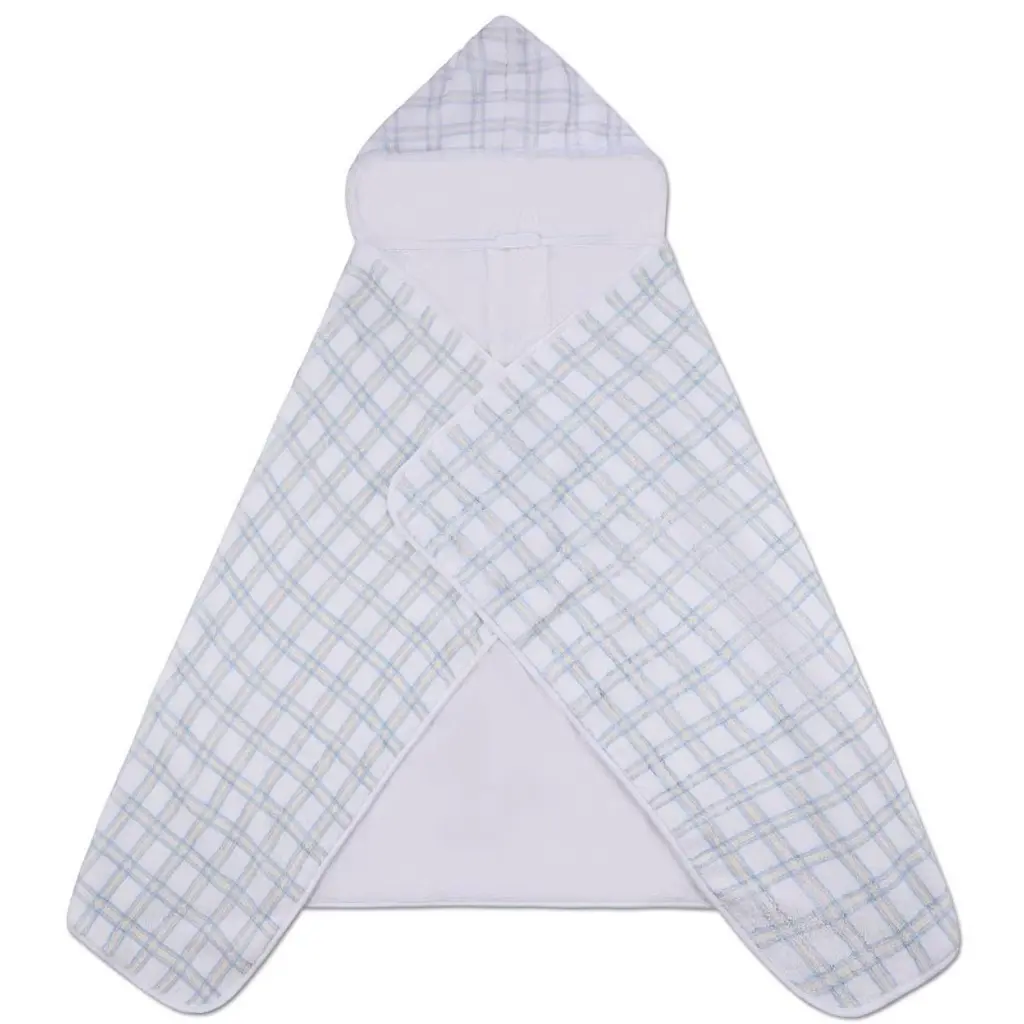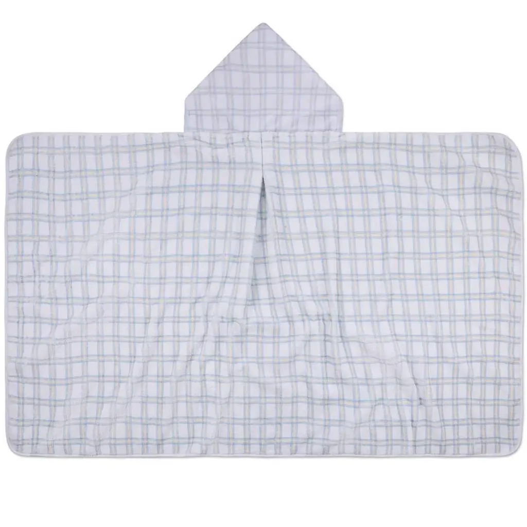 Now he can step right out of the bath into fluffy cloud-like comfort. Our double-layer hooded towel comes in plush, absorbent terry -- breathable cotton inside, wicking polyester outside -- so he'll be warm and dry in no time. Plaid print adds trendy style. One size fits most, from babies to school-age kids.