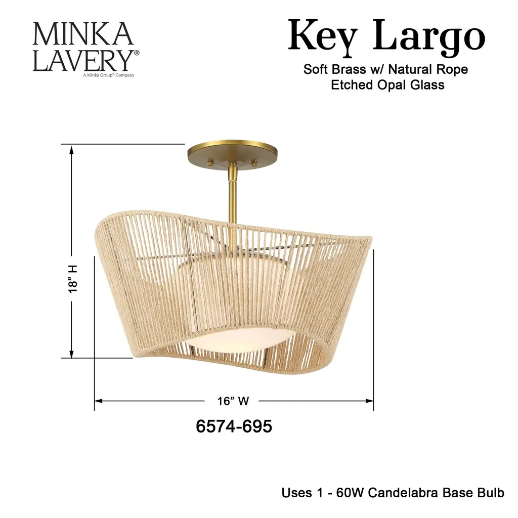 Minka Lavery 6574 Key Largo 1 Light 16" Wide Semi-Flush Ceiling - Soft Brass
