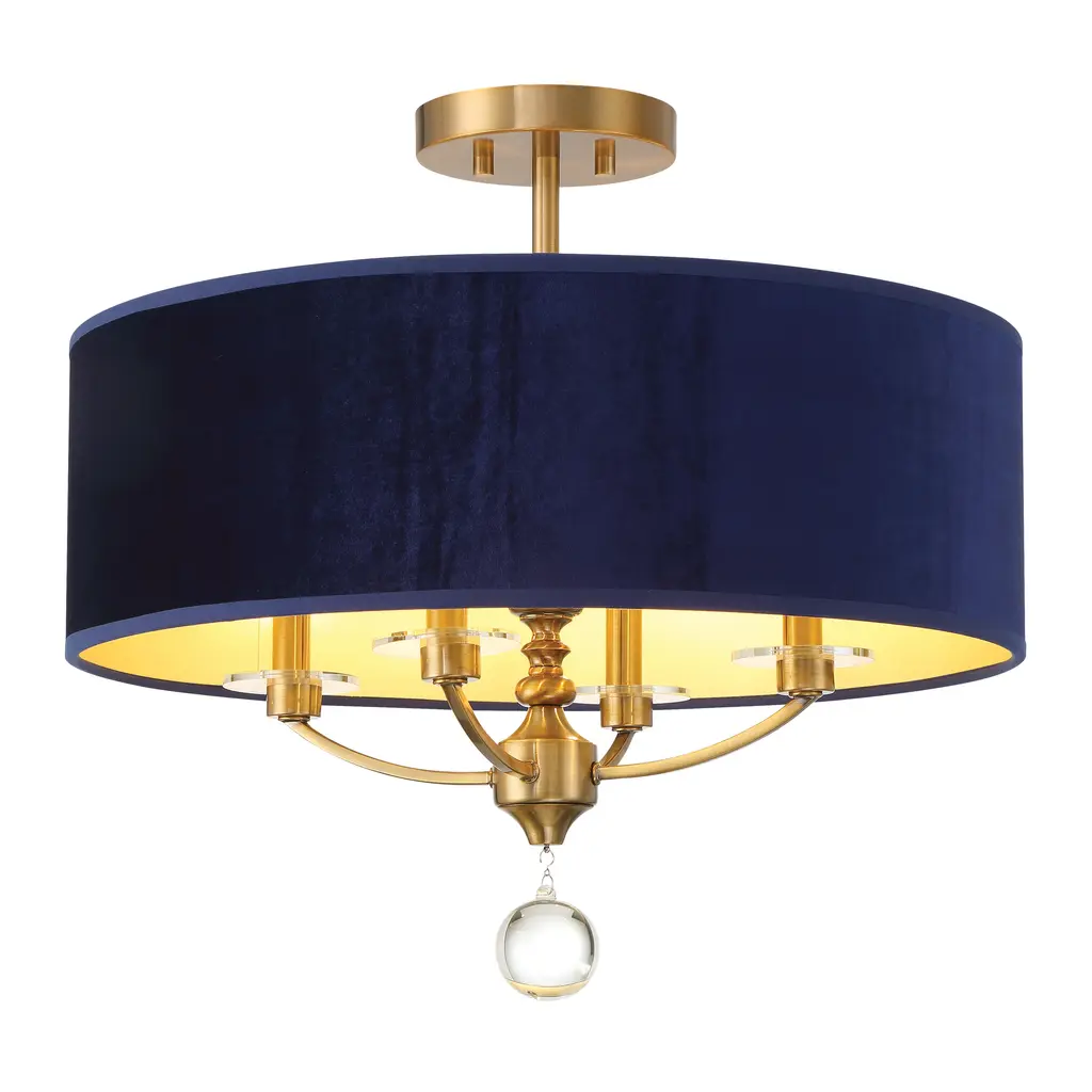 Transform your living space with the Minka Lavery Van Noord - 4 Light Semi Flush in Oxidized Aged Brass Finish. Designed to bring a touch of elegance and warmth, this light fixture is perfect for kitchens and living areas. Its oxidized aged brass finish and velvet shade create a sophisticated look that complements any decor. Easy to install and maintain, it's the perfect addition to elevate your home's ambiance. Enjoy a cozy, inviting atmosphere with this stylish lighting solution.