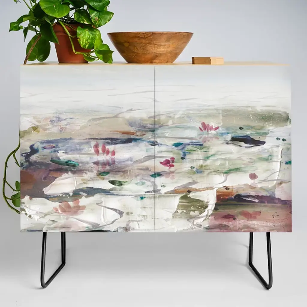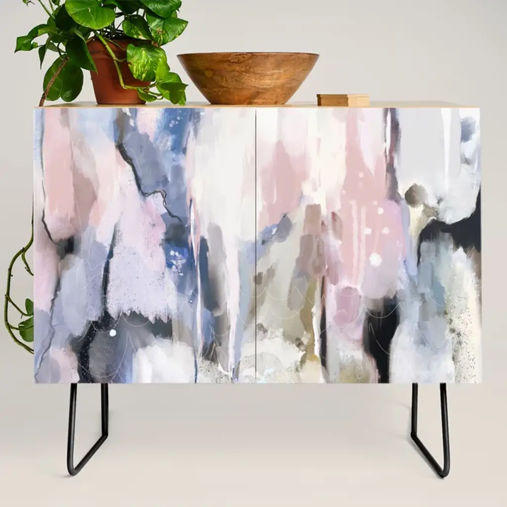 Mirage [1]: A Vibrant Abstract Piece In Pinks Blues And Gold By Alyssa Hamilton Art Credenza