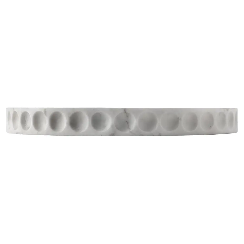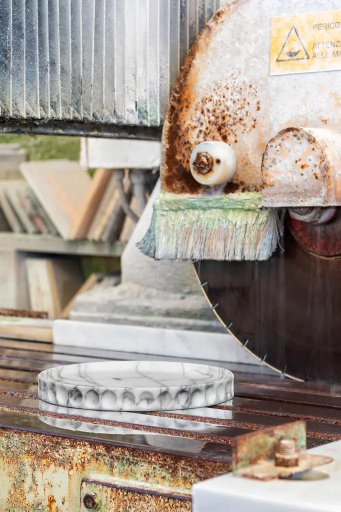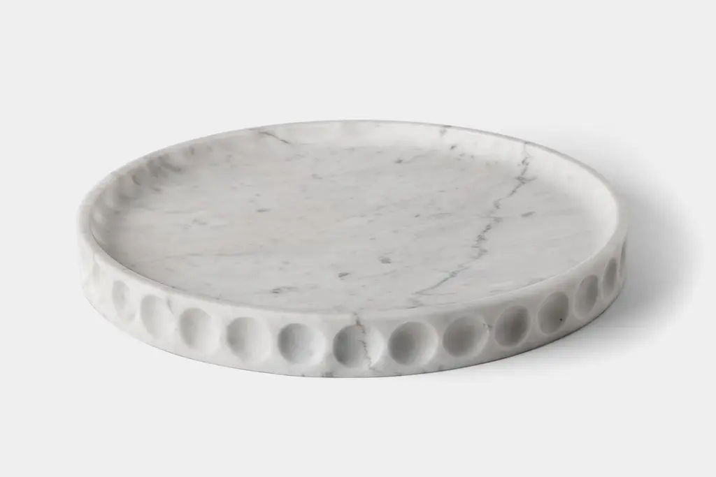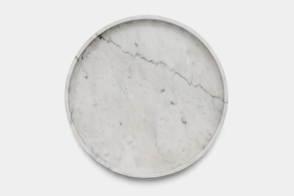 Mirage Contenitore basso by Studio IntervalloDimensions: D 30 x H 3.2 cmMaterials: marble,Available in other stones.The Mirage collection comes from the monolithic materiality of stone. Shape and function coincide, creating an element without frills, which originates by subtracting materials.Full and empty spaces alternate each other and create dissolving shades of light thanks to the juxtaposition of decorations. It’s a container for objects full of its surroundings reflected on its surface.studiointervallo creates furniture and interior design. All its creations are painstakingly researched with a thorough use of full and empty spaces.For this reason, it could only exist between the fullness of the city of Milan and the emptiness of the countryside around it, in a place which is also ideal for meditating, as well as a stimulating anteroom to creative thinking.This unusual location’s aura successfully blends with the projects of studiointervallo, thus enriching them with nature in a final true epiphany which is the very soul of each single creation.Founded by Andrea Ghisoni, the studio pursues the perfect blending of essential lines with the brightness of the shapes and and the nobility of true craftsmanship; the overall goals would be to just make people happy.