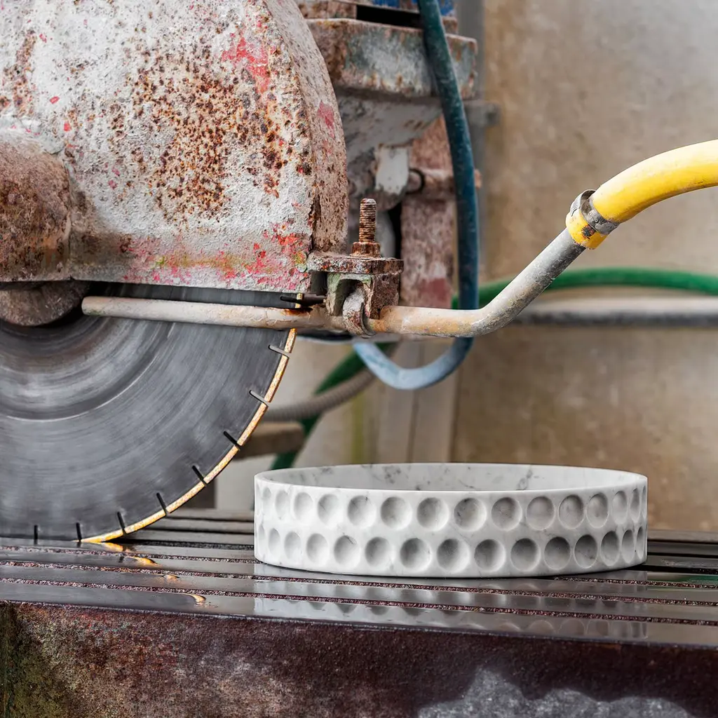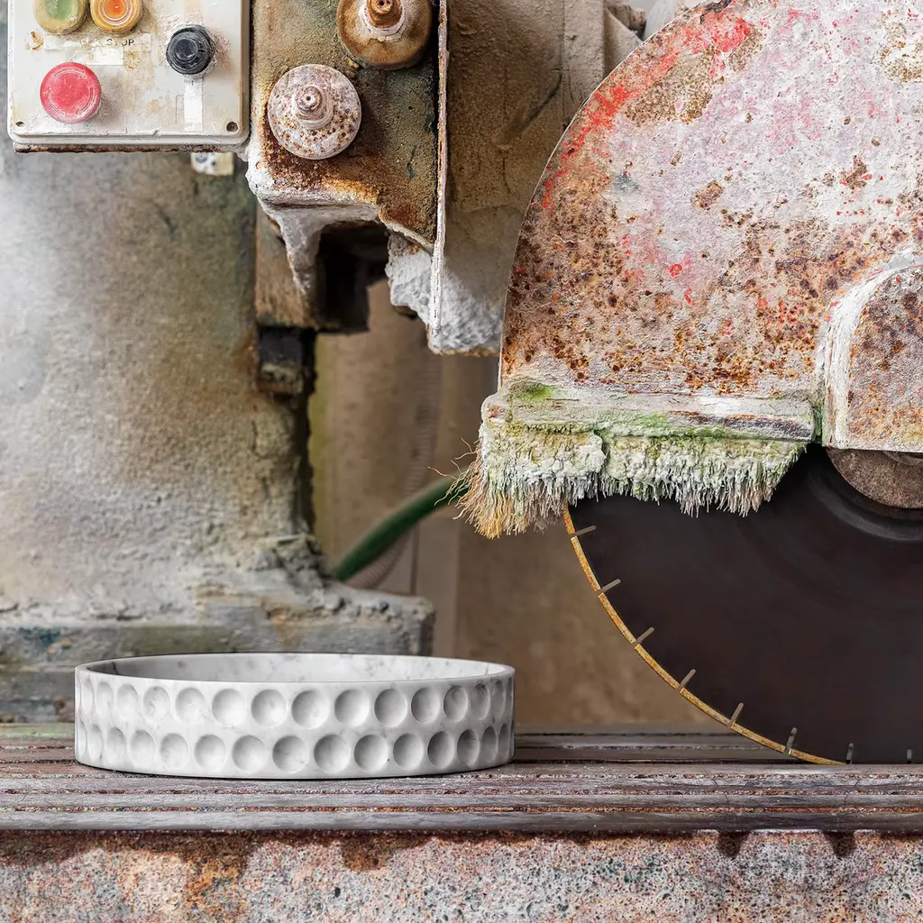 The Mirage collection comes from the monolithic materiality of stone. Shape and function coincide, creating an element without frills, which originates from subtracting materials. Full and empty spaces alternate with each other and create dissolving shades of light thanks to the juxtaposition of decorations. It’s a container for objects full of its surroundings reflected on its surface.