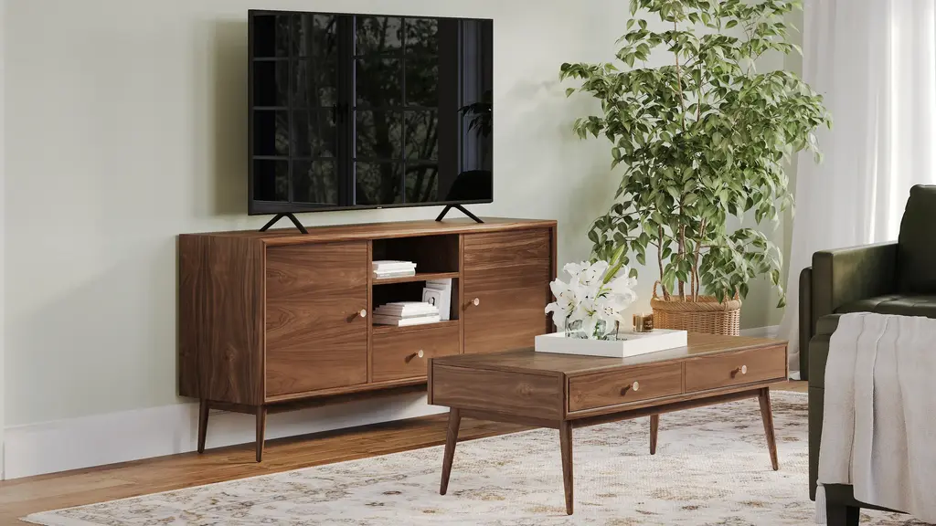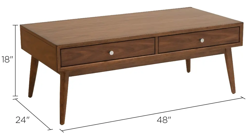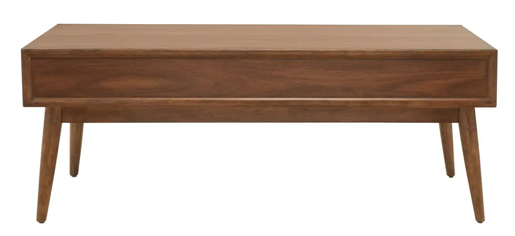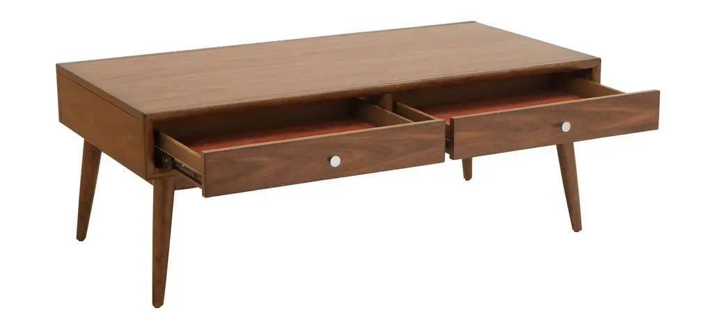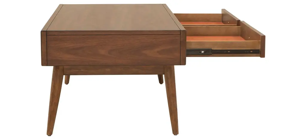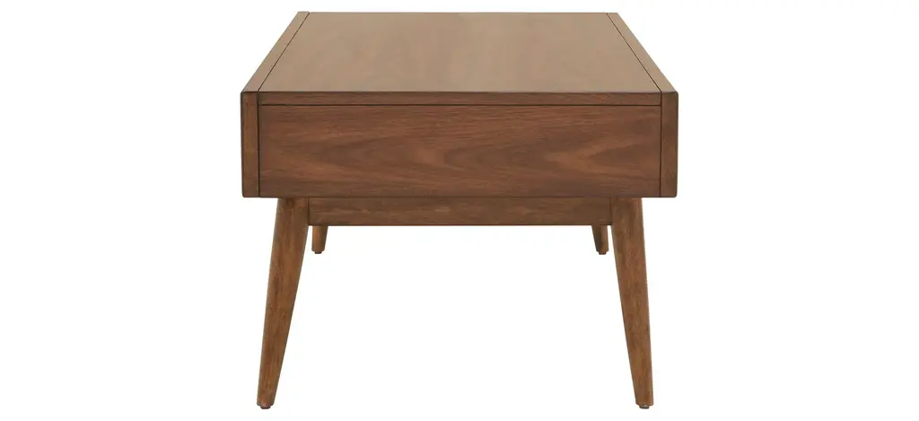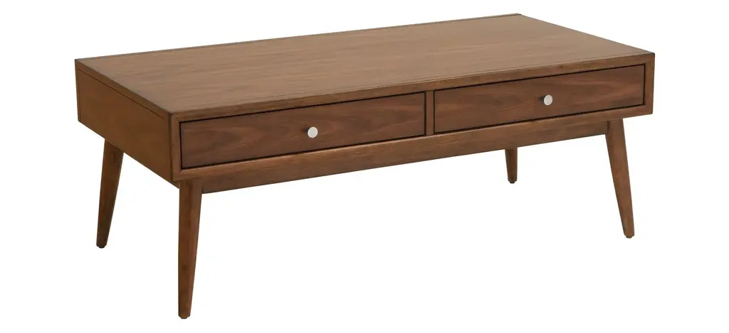 The clean, contemporary look of the Miranda cocktail table adds a sleek, modern air to any decor. Beautiful walnut finish and simple design has a minimalist vibe that's sure to add a sophisticated touch to your room.