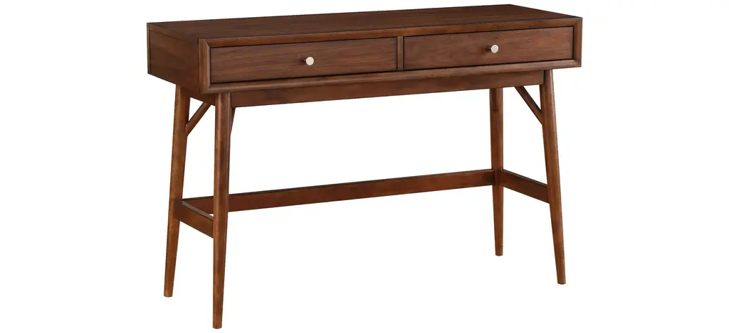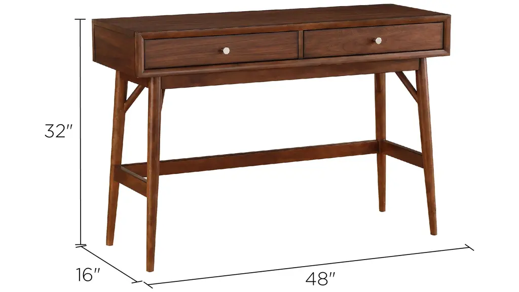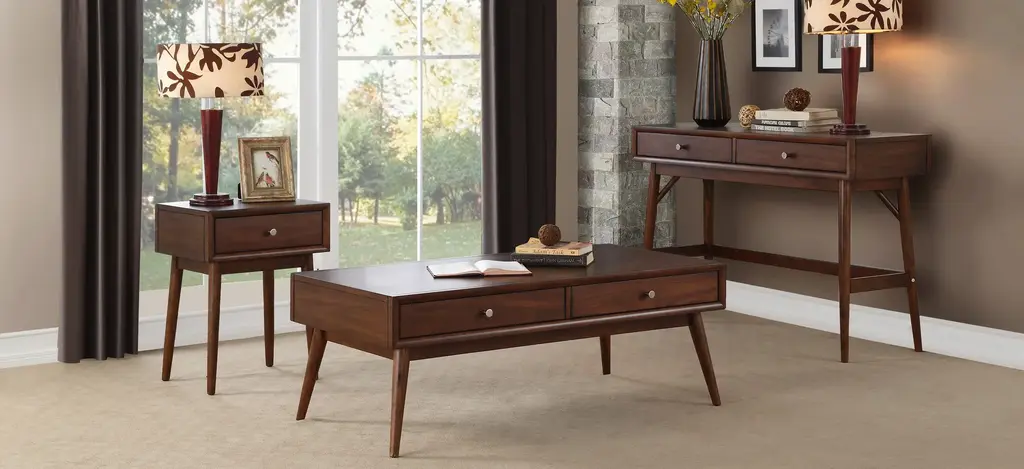 Providing functional use and retro-modern styling for your home is the Miranda Sofa Table. The design of the sofa table allows for the perfect placement within your home to accent your busy lifestyle. The brown finish combined with polished nickel knob hardware, drawer storage and a mid-century inspired profile, blend effortlessly to create this stylish table.