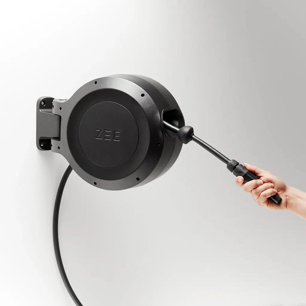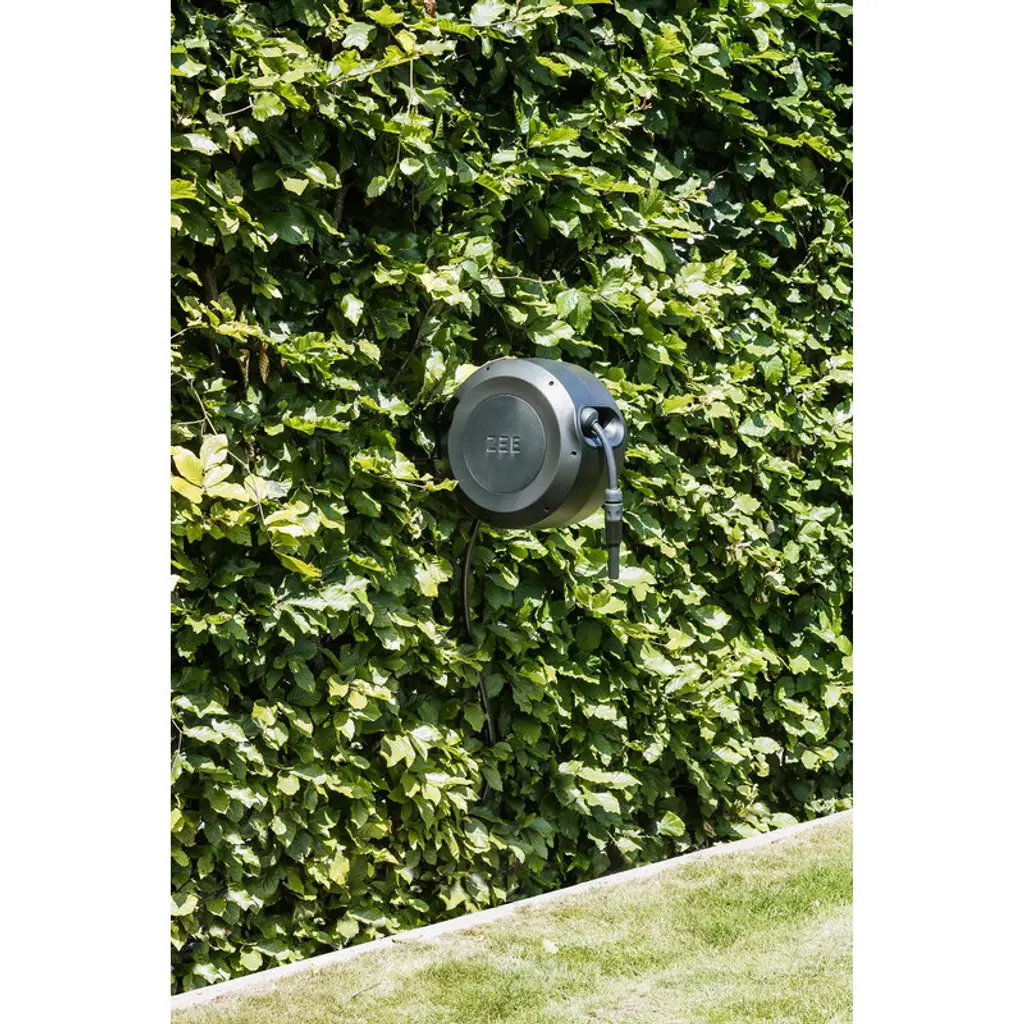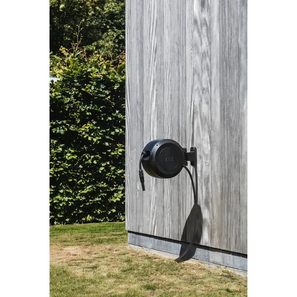 ZEE's Mirtoon hose reel makes watering terrace or garden plants neat and hassle-free. With a 10-meter hose length, it reaches into the furthest corners of even the larger yards, so you're sure to keep your lawn lush and green all summer long. The Mirtoon reel is made of high-quality UV-protected ASA plastic and is easy to attach to the wall of the terrace, patio or house. The Mirtoon hose reel includes all the accessories needed for watering: a hose connector with water stop, hose connector, tap connectors of 3 sizes, an adjustable nozzle and a spray gun with 5 different settings. During the winter season, it's best to store the spray gun indoors to prevent frost damage.