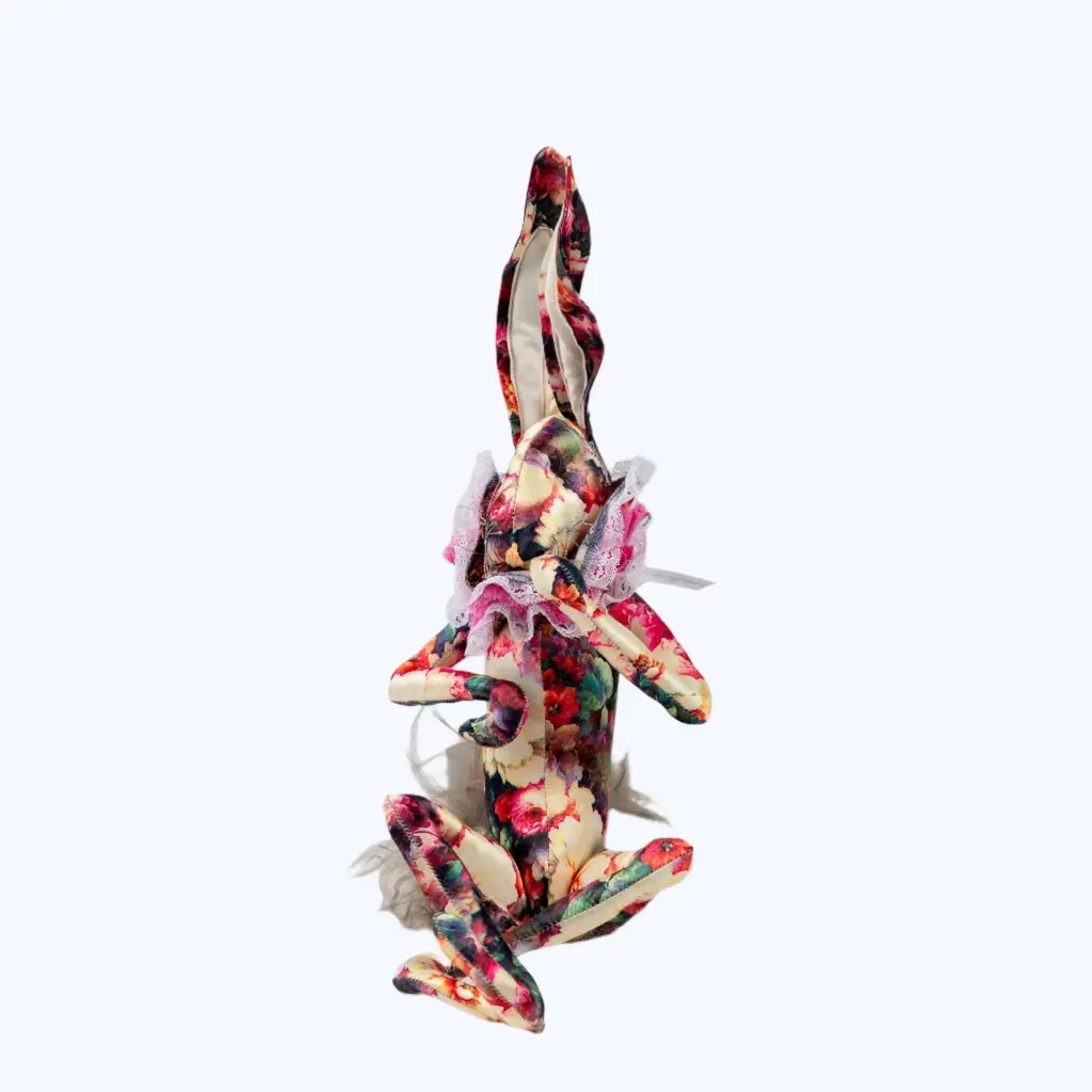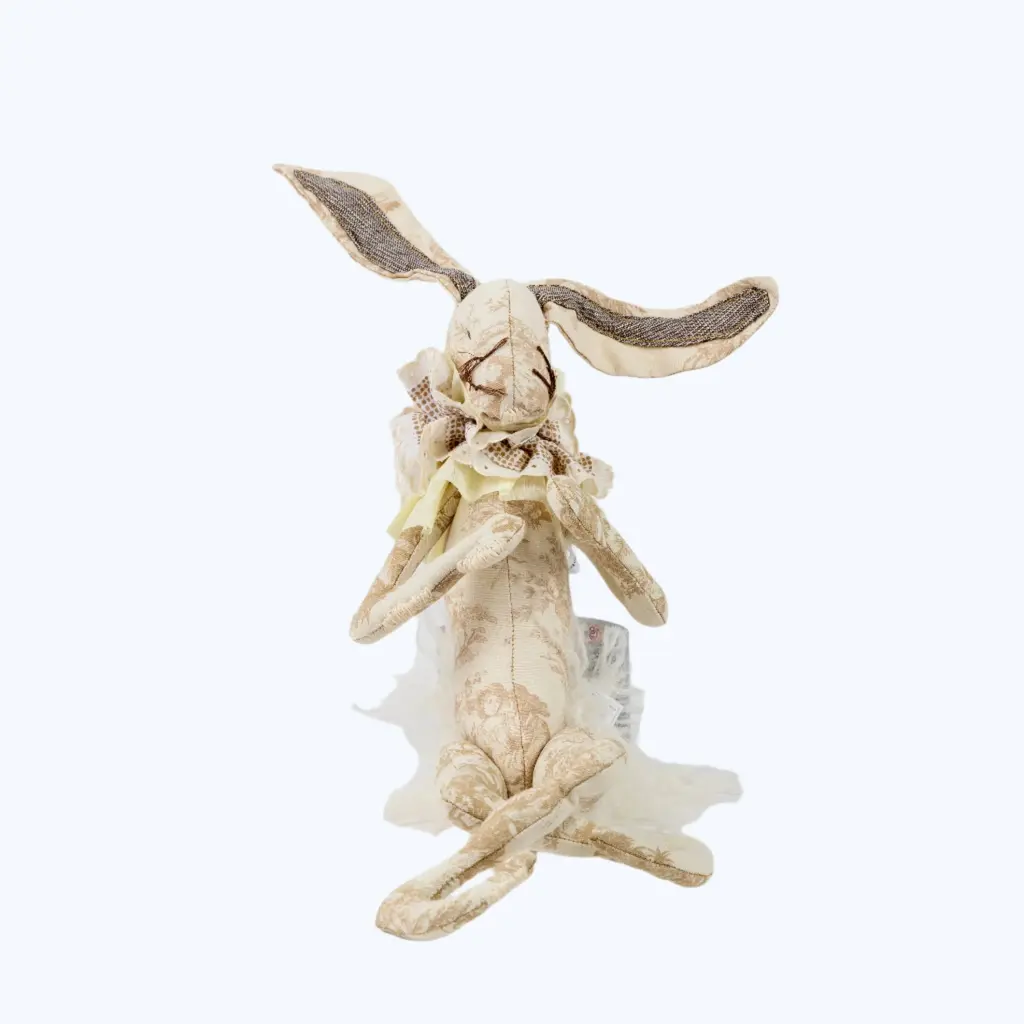 Elevate your space with the exquisite Mischievous Stuffed Hare by Brownstone Playhouse. Handcrafted in vintage fabrics and produced in limited quantities, the Mischievous Stuffed Hare is inspired by fables, fairy tales, and classic children’s stories like Beatrix Potter’s Peter Rabbit. Designed to delight children and adults alike, this original textile creation captures the stunning artistry and imaginative whimsy for which Brownstone Playhouse is known. Available in rose, satin, and toile prints.