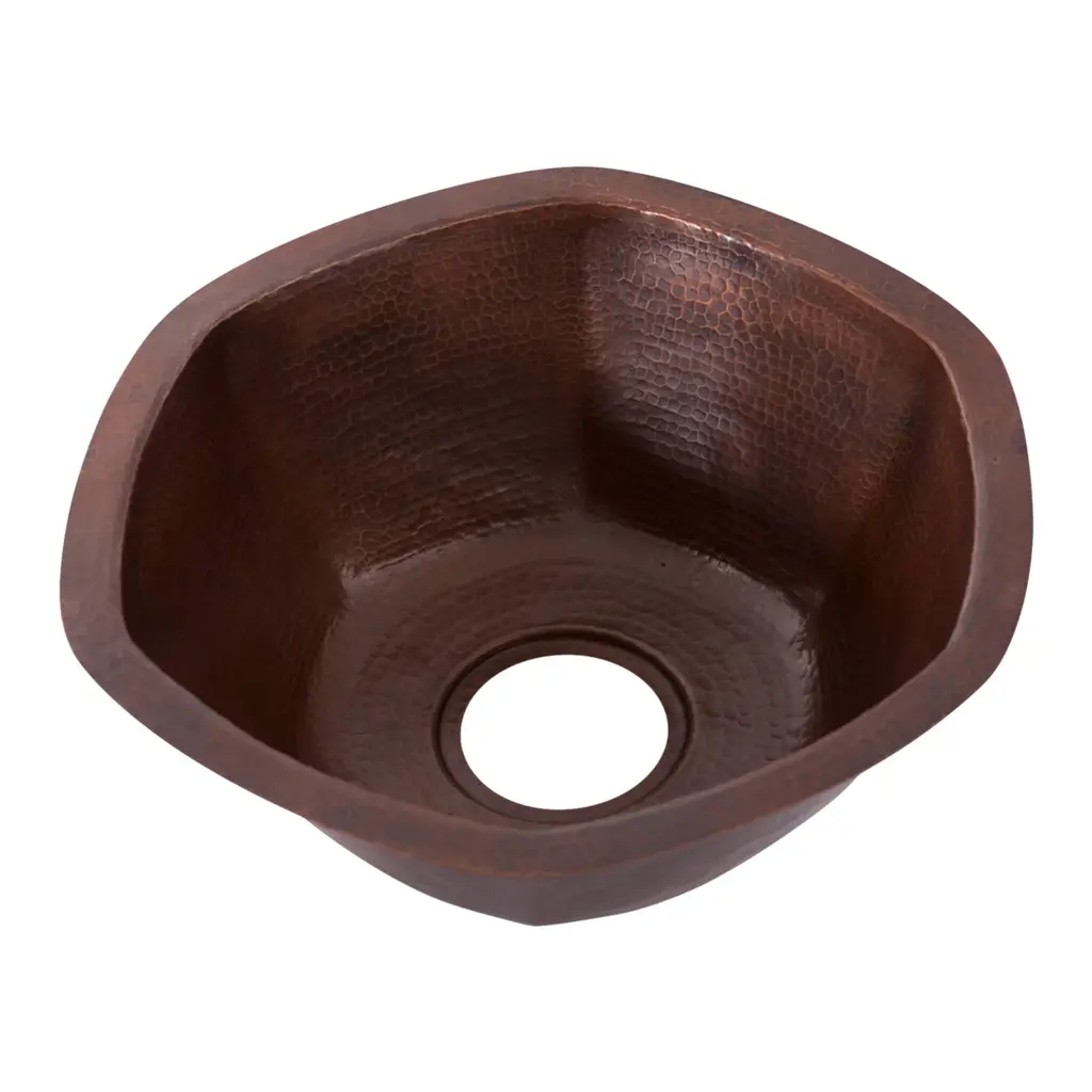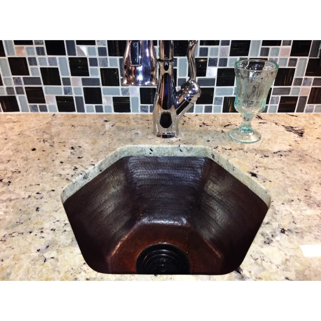 Miseno Hexagon 16" Copper Drop-In Or Undermount Bar Sink - Hand-Hammered Antique Copper