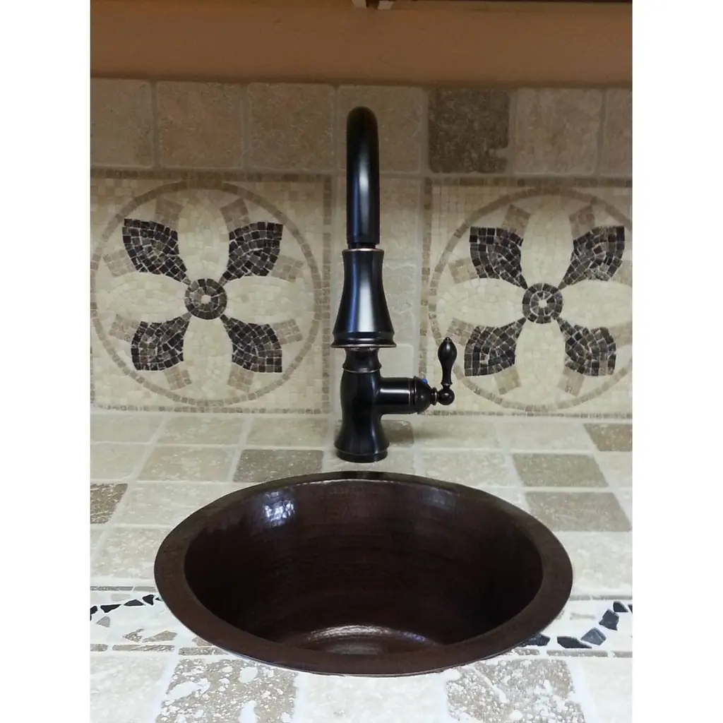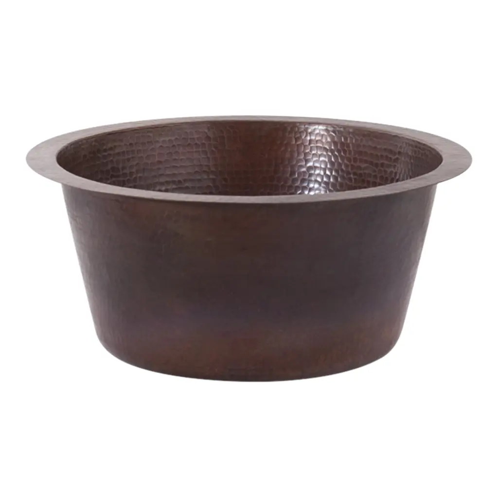 Miseno Round 15" Copper Drop-In Or Undermount Bar Sink - Hand-Hammered Antique Copper