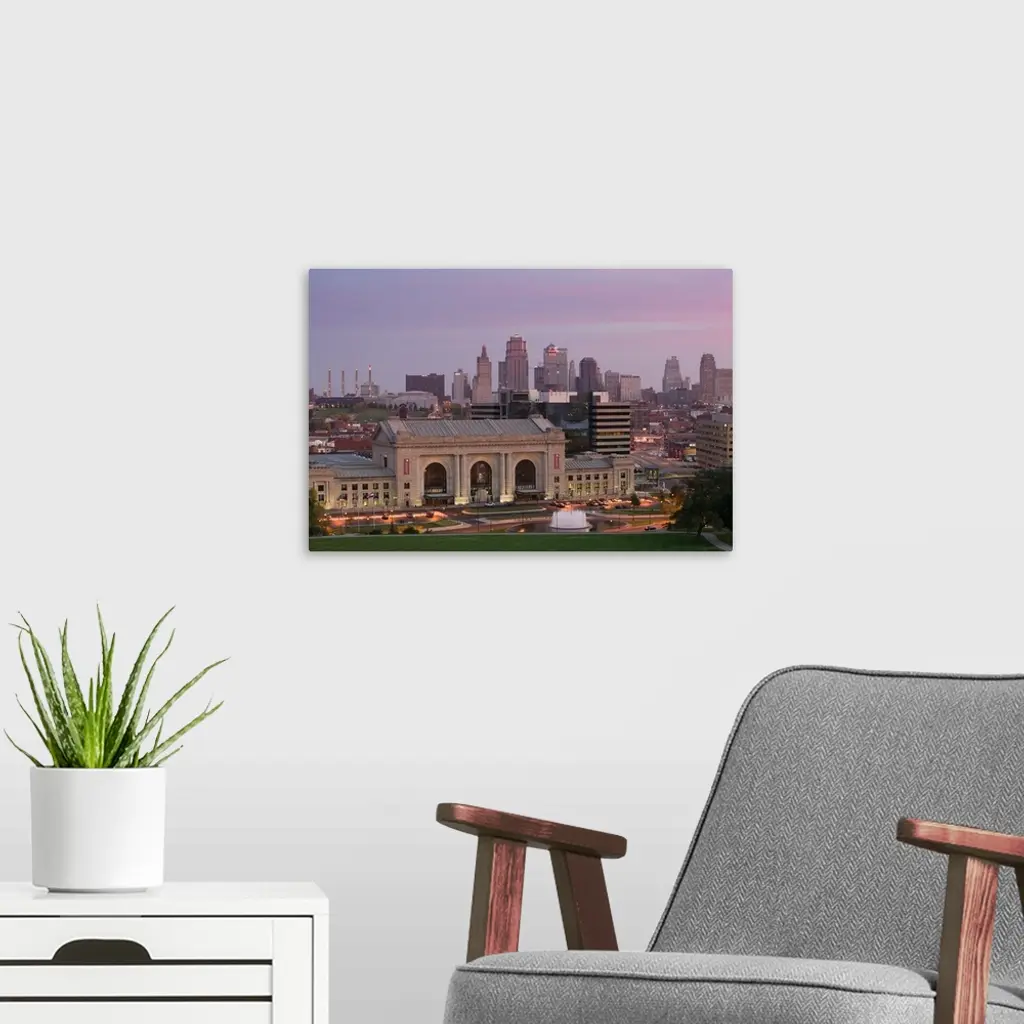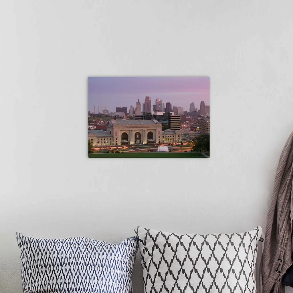 Missouri, Kansas City, Union Station And Kansas City Skyline At Dawn