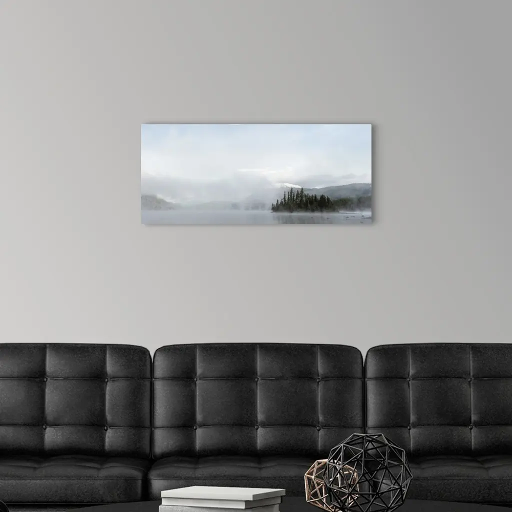 Early morning mist rises off of Lake Wenatchee on an autumn morning near Leavenworth, Washington.