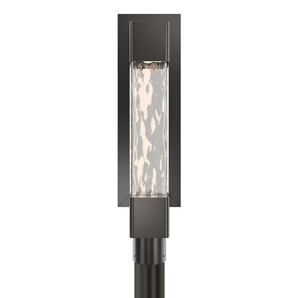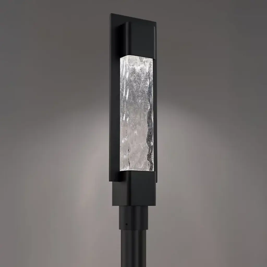The Mist Outdoor LED Post Light from Modern Forms draws inspiration from handmade colonial glass, where seeded and hammered textures create organic patterns within a structured aluminum frame. The mouth-blown glass diffuser exhibits natural irregularities that scatter light into gentle, textured patterns across surrounding surfaces. Each panel displays unique characteristics inherent to the artisanal process, making every fixture subtly different. The weather-resistant construction ensures reliable outdoor performance, while the integrated LED technology eliminates the need for external drivers.