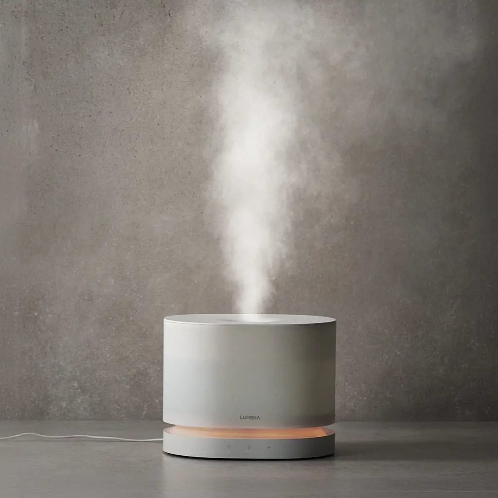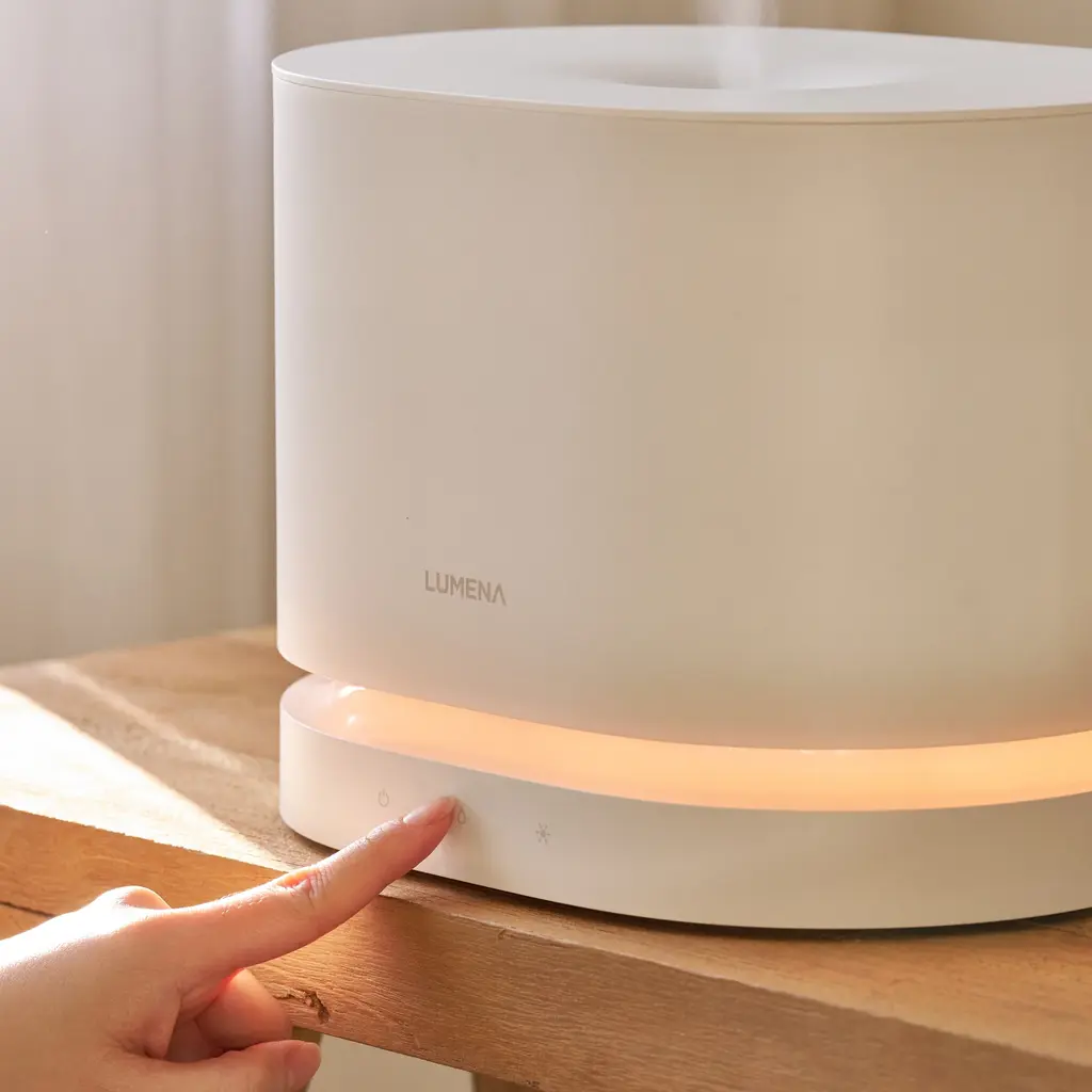 An all-day humidifier with three levels of mood light. Relax and refresh yourself in comfort with the cool, glowing design of this generously sized 3L humidifier, designed to provide up to 24 hours of humidification without a refill by using ultrasonic vibrations to break water into ultra-fine particles, producing a cool mist that hydrates the air without heat. The Mist Pot’s simple, round shape evokes the comfort of a bathtub, and both its cool mist and mood light offer three levels of adjustability so you can make your environment exactly the way you want it. Features of the Mist Pot Cool Humidifier and Mood Light include: Translucent tank material lets you view the water level from the outside. Mood light with 3 levels of adjustability. Cool mist with 3 levels of adjustability. 3L reservoir provides up to 24 hours of humidification. Low-noise design humidifies at just 20-30db. Mute Function: Press and hold the mood light button for more than 2 seconds to mute the button sound and water shortage alert sound. Memory Function: The device starts with the last used settings. All settings will reset when the adapter is disconnected. Water Shortage Alert: When the water level is low, the built-in sensor triggers an alert sound and the mood light will blink. Intermittent Humidification Mode: Press and hold the humidification button for more than 2 seconds to activate the intermittent mode. The device will cycle through three different humidification stages. Easy to clean. Made of BPA-free, non-toxic materials. Powered by standard plug-in, with one end DC, the other standard wall plug-in. Measures 8.15h x 10.5w x 8.15" d.