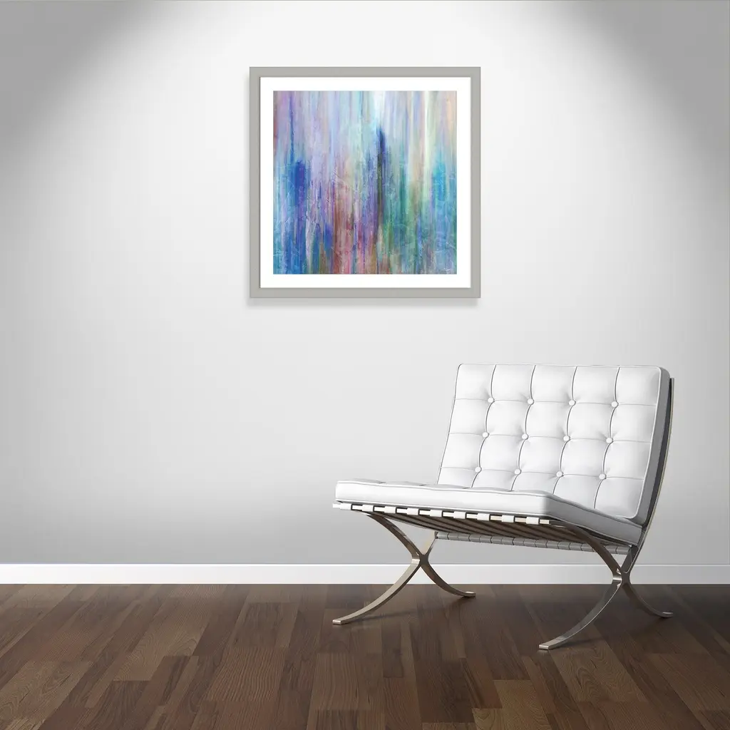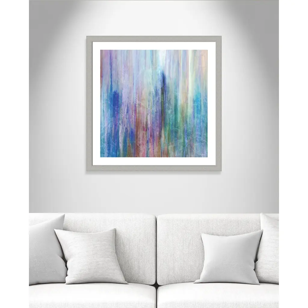 Excite and inspire your guests with 'Mistify I', a vivid and enchanting abstract image that features a dazzling blend of blue and purple. Finished in a modern frame made of PS materials, this is the perfect addition to your walls. Archival fine art giclée print on acid-free and lignin-free 100% cotton rag paper; image includes a bright white self-matting border Printed with gallery-quality inks using the finest giclée print technology for unsurpassed color gamut and clarity Lightweight and finished under shatter-resistant acrylic; hanging hardware attached for easy and secure installation Handcrafted in the USA and ships with a Certificate of Authenticity Lightweight and finished under shatter-resistant acrylic