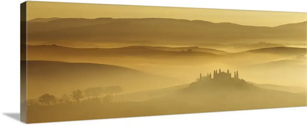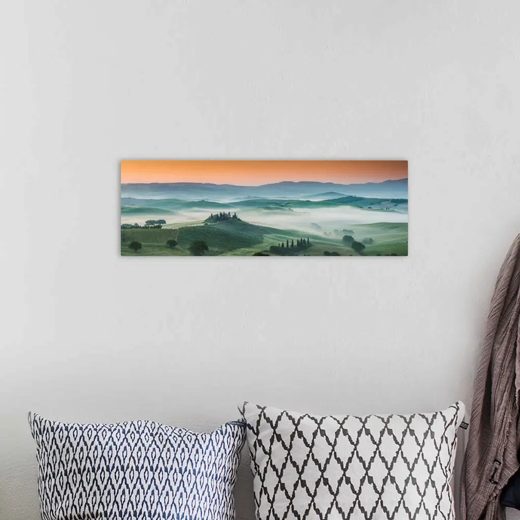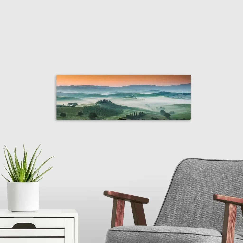 Misty Landscape Behind Belvedere, Val D'orcia, Tuscany, Italy