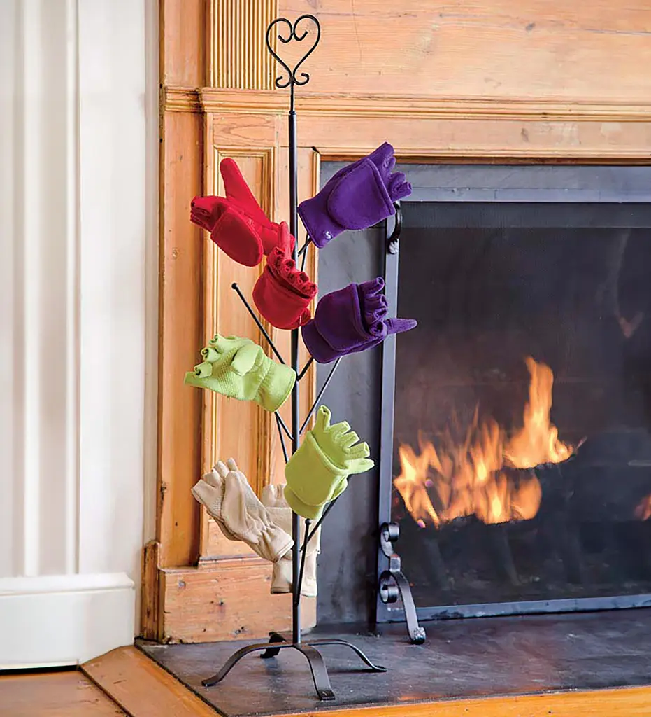 Store and dry your mittens, gloves, socks and hats on our freestanding Mitten Tree with Heart-Shaped Finial.Place our Mitten Tree next to your hearth or wood stove for a convenient way to dry winter wear and accessories. You can also use the it in your laundry room, arts and crafts/hobby room, mudroom and more!Mitten Tree comes with interchangeable heart finial. Tubular steel on four sturdy legs.