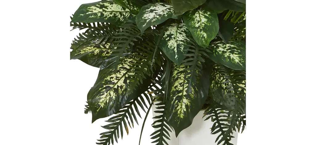 A combination of lush leaves, mixed with various green hues make this Mixed River Fern and Dogtail Artificial Plant in Planter stand out from the rest. It comes in a white tower planter.