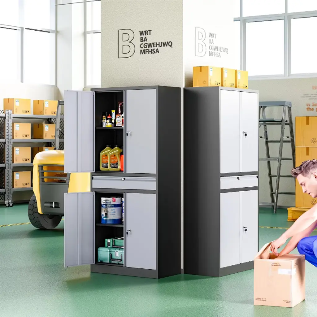 Strong & Secure Storage: Built with a heavy-duty metal frame, this cabinet boasts an 800 lbs capacity, secure locking system, and adjustable shelves for versatile use in offices, garages, or homes. Durable, rust-resistant, and easy to assemble – your reliable storage solution!