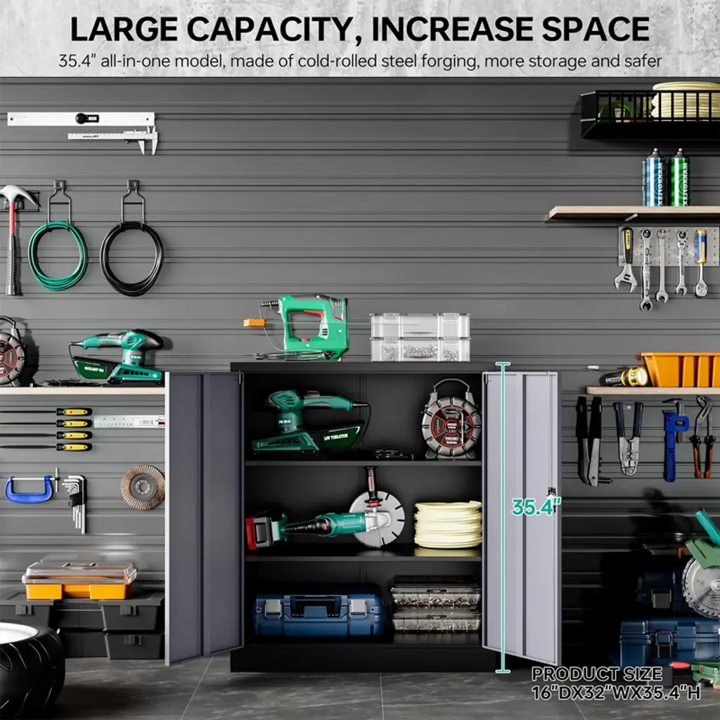 Strong & Secure Storage: Durable steel cabinet features 2 adjustable shelves, a 3-point locking system, and rustproof coating for long-lasting use. Perfect for homes, offices, or garages, it’s versatile, easy to assemble, and keeps your belongings safe and organized!