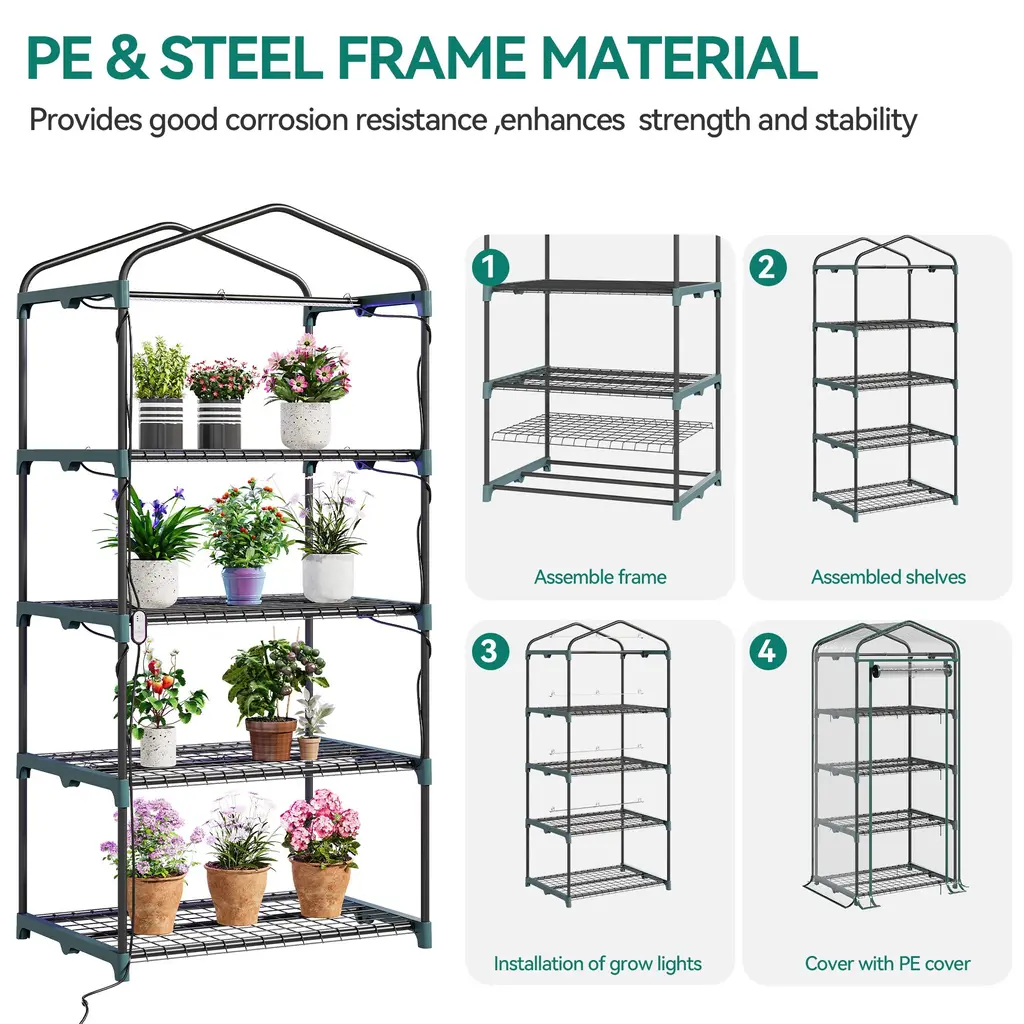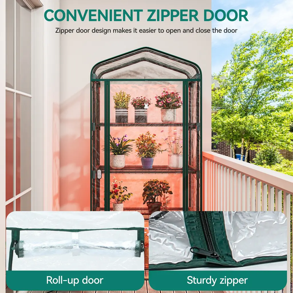 Transform your gardening experience with our Mini greenhouse. Perfect for any home gardener aiming to extend their growing season, these greenhouses offer both functionality and style. Imagine nurturing your favorite plants, herbs, and vegetables even when the weather turns chilly, all from the comfort of your backyard. The greenhouse features a robust 4-tier shelving system, each tier capable of holding up to 24lbs, providing ample space for your diverse gardening needs. The clear PVC cover, coupled with a zippered roll-up door, ensures your seedlings are well-protected from cold weather and frost, allowing you to start your gardening early and continue late into the season. With a tubular steel frame, this greenhouse is both durable and portable. Its green design with a clear cover seamlessly blends into any garden setting. Equipped with locking wheels, you can easily move your greenhouse indoors or outdoors, or secure it in place by removing the wheels. Experience the joy of gardening year-round with the Home-Complete Outdoor Greenhouses. Whether you're an experienced gardener or just starting, this greenhouse is the perfect addition to your home. Feature: Durable Construction: Made from a sturdy tubular steel frame with a clear PVC cover for long-lasting use. Spacious Shelving: Four 27-inch wide shelves, each with a height spacing of 14 inches and a weight capacity of 24 lbs, offer ample room for plants and gardening supplies. Extended Growing Season: Protects seedlings from frost, allowing you to start your garden early and extend it later into the year. Portable Design: Equipped with locking wheels for easy mobility, or remove the wheels to secure the greenhouse in place. Versatile Use: Ideal for both indoor and outdoor use, making it perfect for showcasing perennials or storing gardening supplies during the offseason.