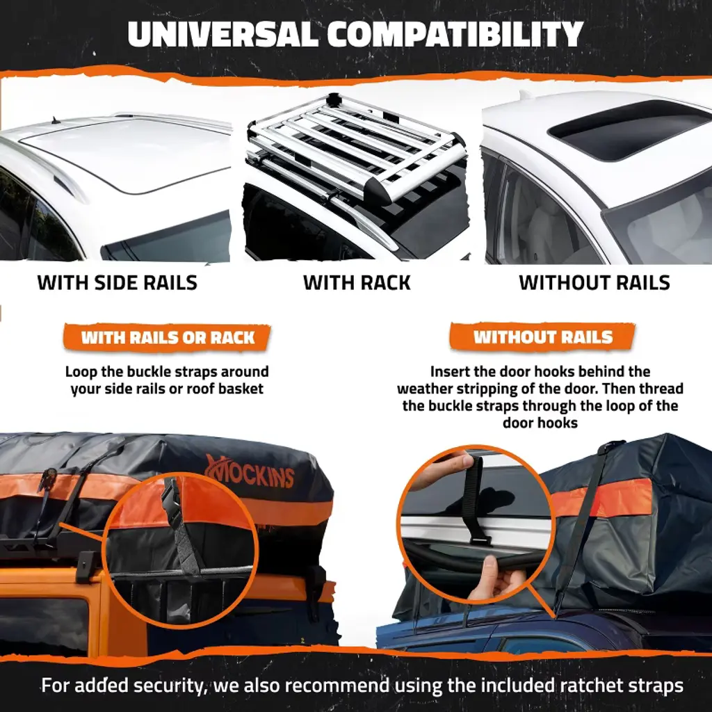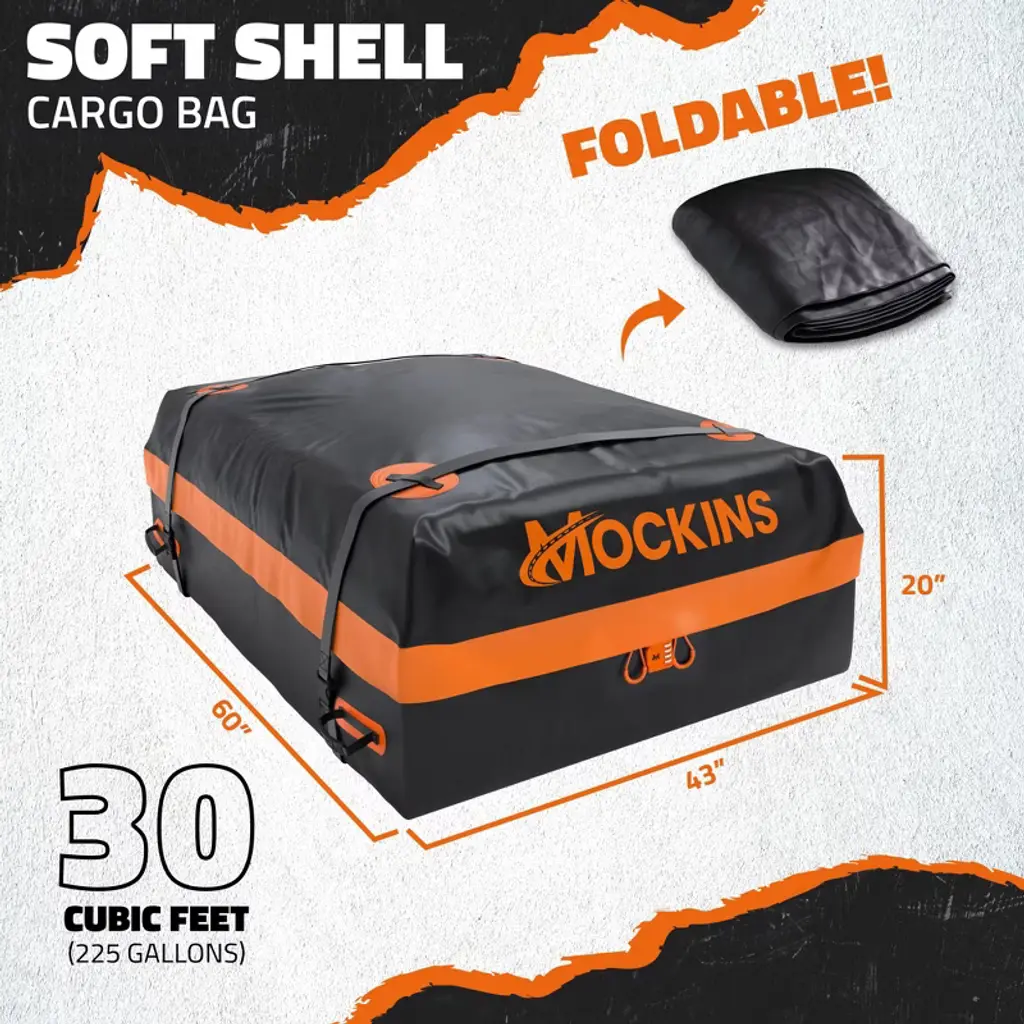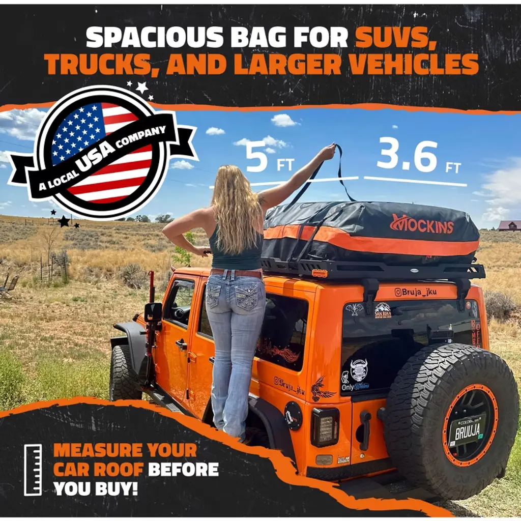 Mockins 30 Cu Ft. Orange Waterproof Rooftop Bag (60"x43"x20") With Mat, Straps, Hooks & More
