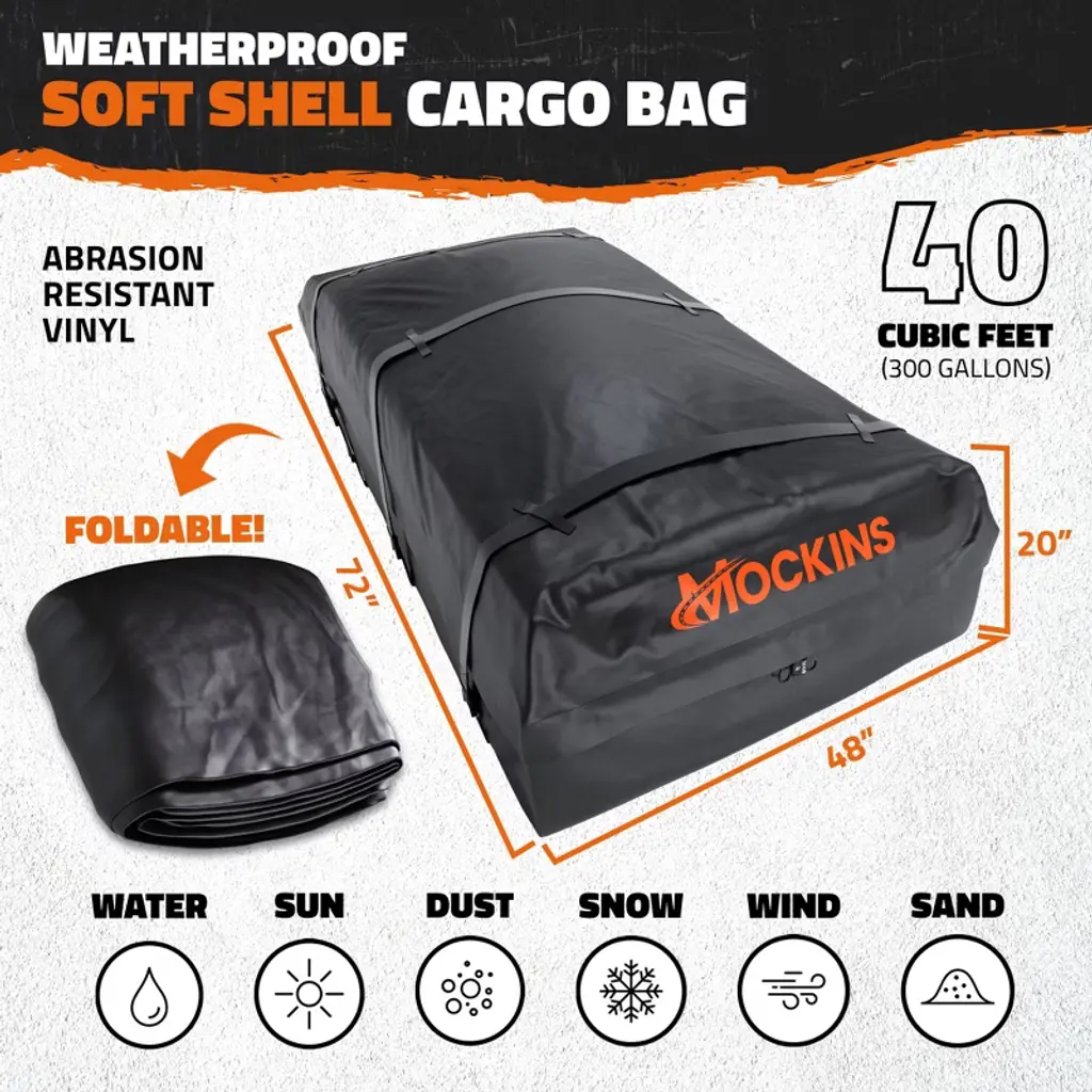 Mockins 40 Cubic Ft Roof Carrier Cargo Bag - 72"x48"x20"-black