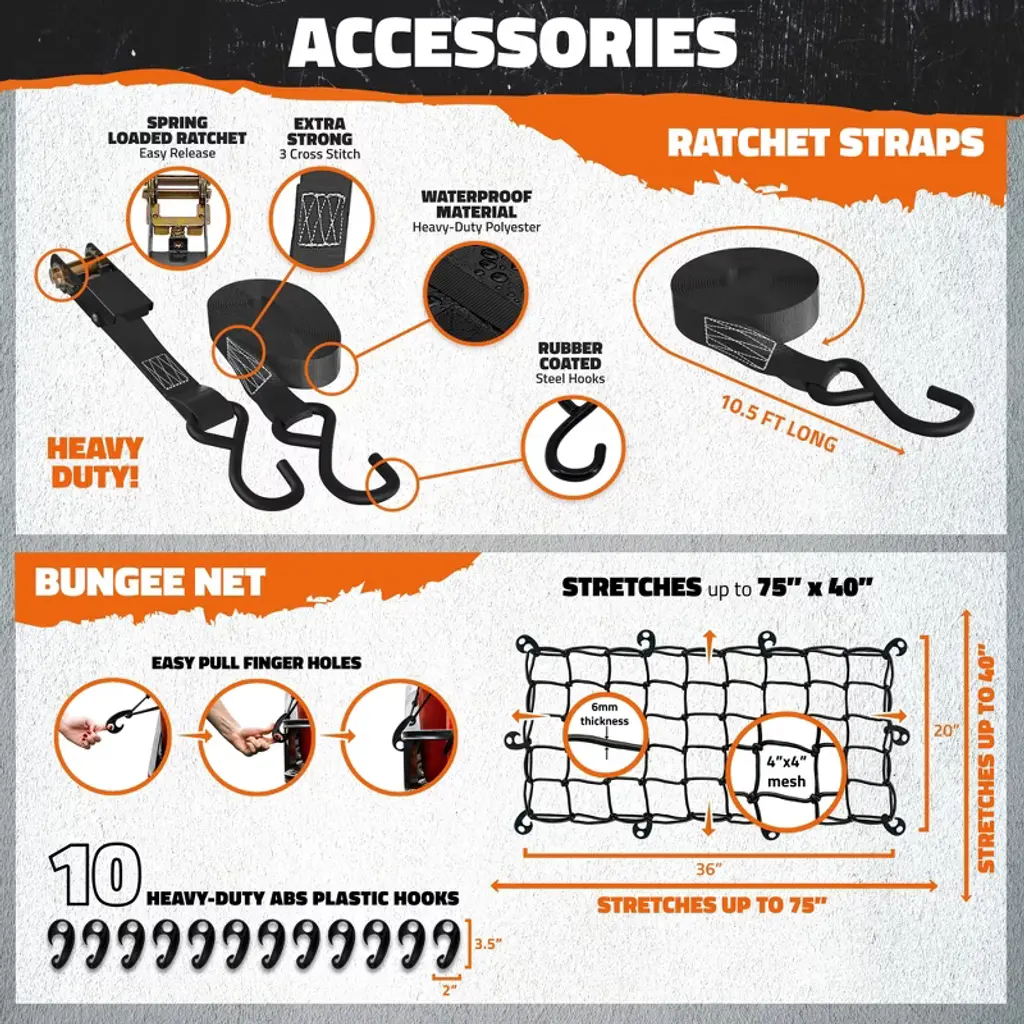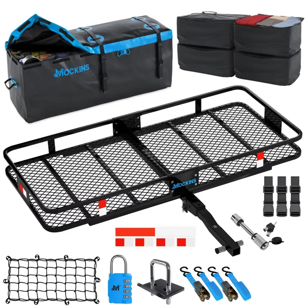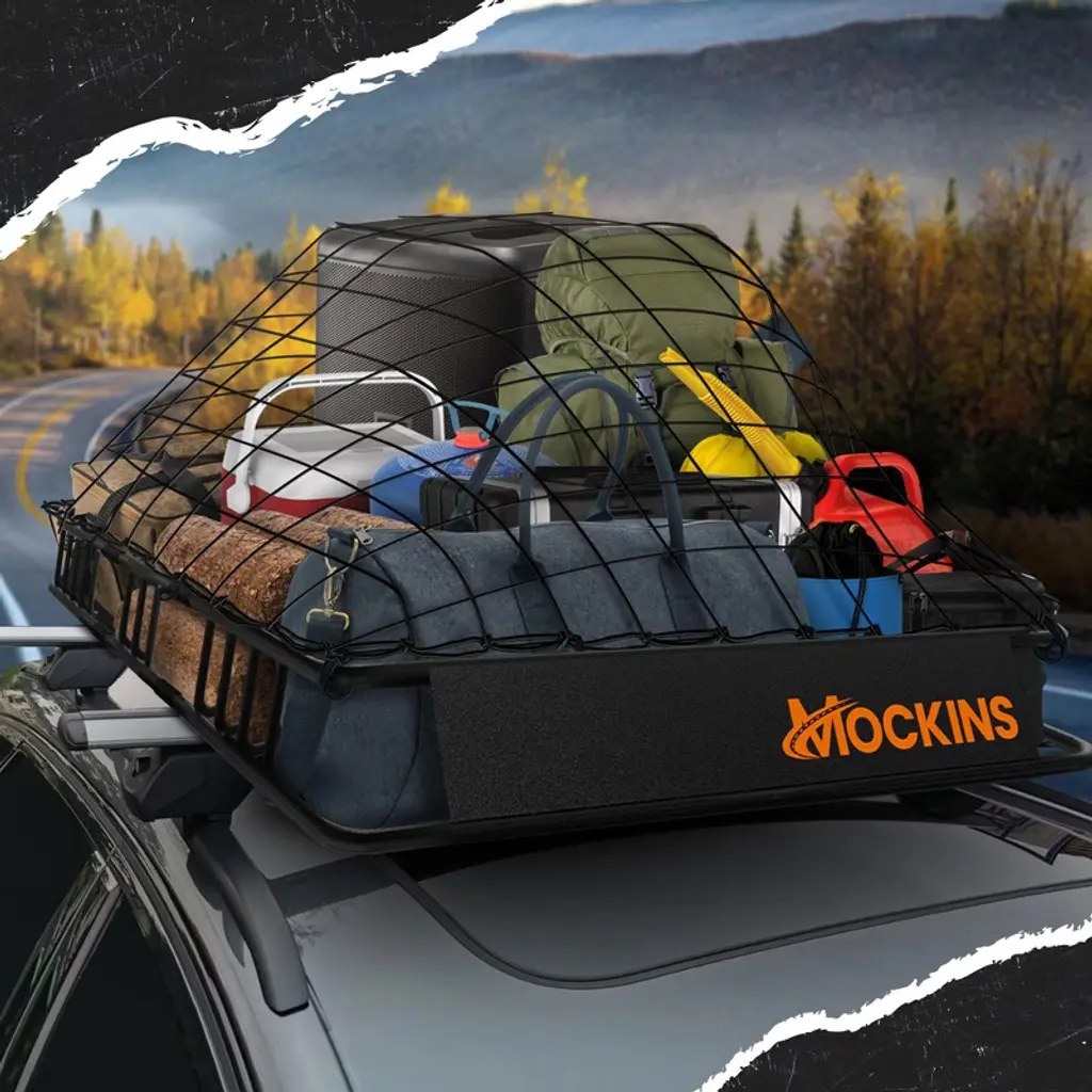 Safely haul up to 250 lbs. of bulky or dirty cargo without compromising on passenger comfort or vehicle cleanliness, with a Mockins Luggage Roof Rack. This anti-rust steel, aerodynamic, Cargo Carrier Basket is the perfect option for reliably transporting luggage and equipment of all shapes and sizes. Simply chose between the extendable length options, to best suit your needs, and secure the roof basket to your vehicles crossbars. With two waterproof ratchet straps and a cargo net for extra security, you're in for a smooth and dependable ride with Mockins.