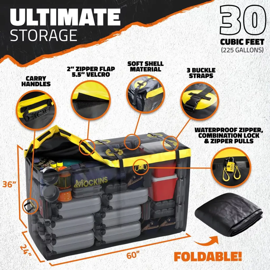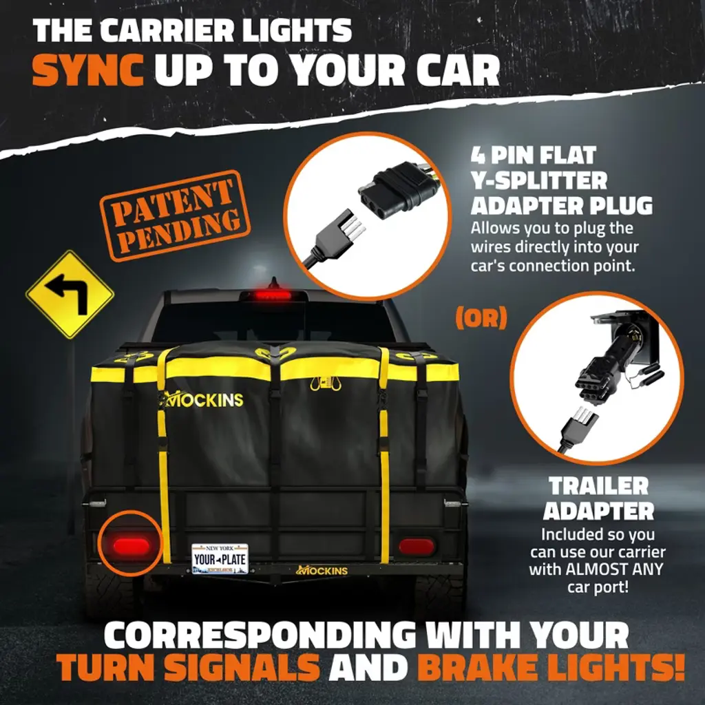 Mockins 60"x24"x14" High Rail Hitch Cargo Carrier With Rear Lights And 30 Cu.ft. Yellow Cargo Bag