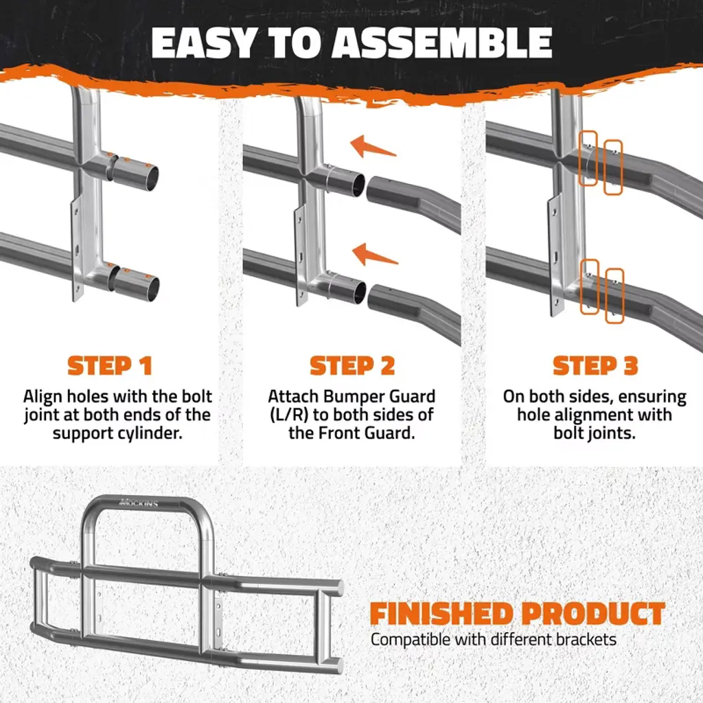 Fortify your truck tractor with the Mockins Grille Guard, constructed for superior heavy-duty protection. Specially forged for semi-truck coverage, this truck bumper guard defends against the unexpected, keeping you safe and the front of your rig intact. Our deer guard for trucks includes folding mounting brackets for easy access under the hood, as well as all the necessary hardware for hassle-free installation. Don’t settle on your semi’s security with the Mockins Heavy Duty Truck Grille Guards.