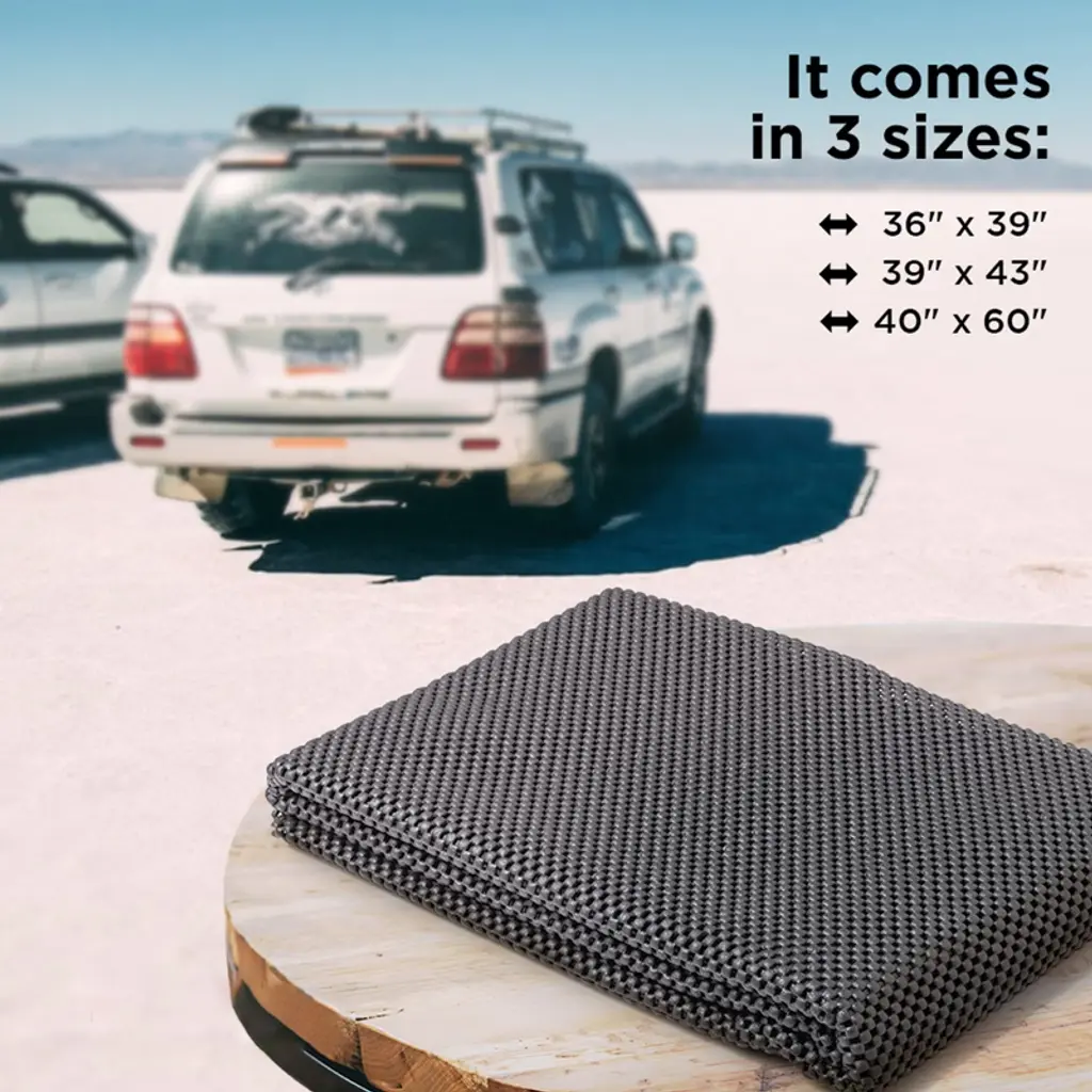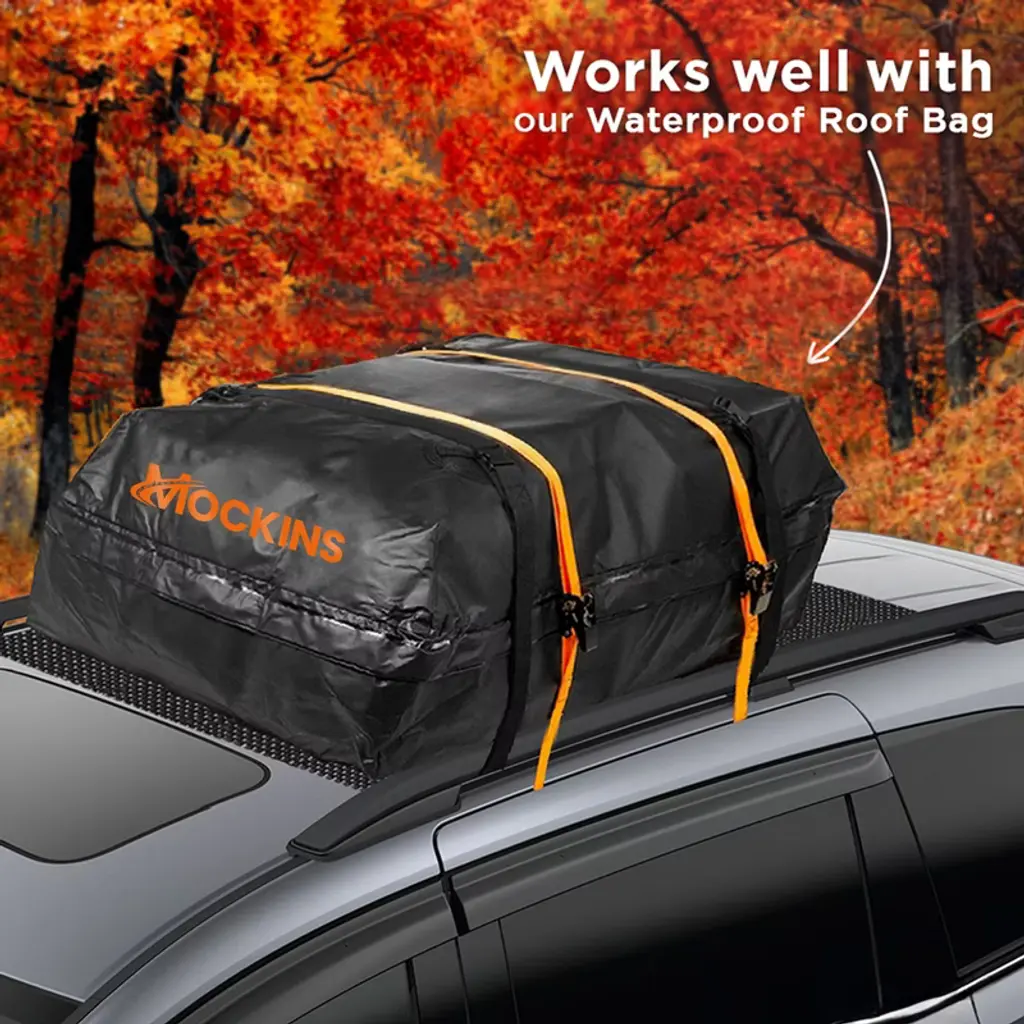 Prevent your cargo bag from shifting and scratching your vehicles roof with a Mockins Protective Roof Mat. These anti-slip pads are manufactured using thick, high-quality material, to ensure durability and long term satisfaction. They can easily be folded or trimmed, using basic scissors, for a more customized fit.