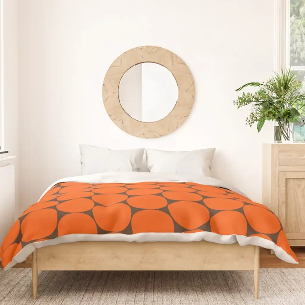 Mod Dots Retro Contemporary Pattern In 70s Orange And Dark Brown Duvet Cover