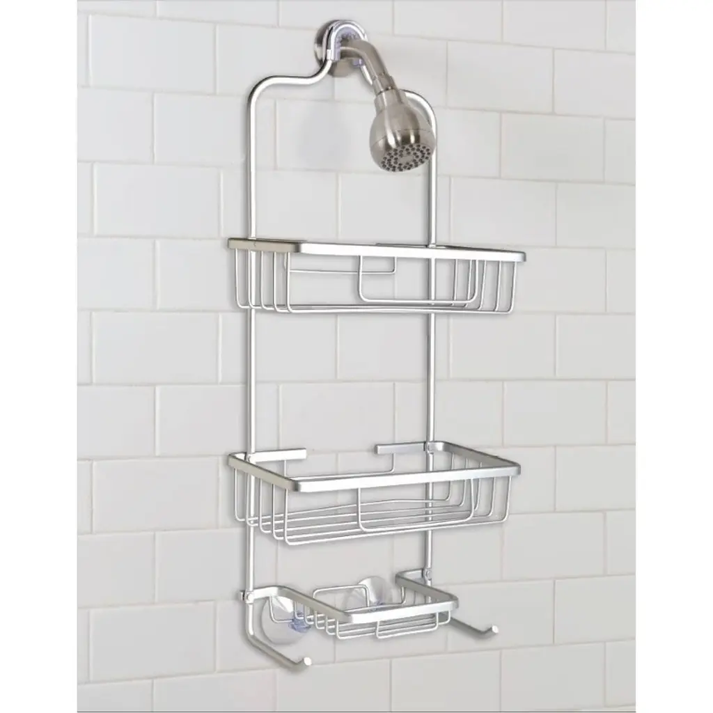 Organize your shower essentials with our sleek satin over-the-shower Aluma caddy. Made from aluminum, this caddy offers both style and functionality. With its easy installation, it effortlessly hangs over your showerhead. Featuring three spacious shelves, it provides ample storage space for your toiletries. Resistant to rust and water, this caddy ensures long-lasting use, making it a reliable and stylish addition.