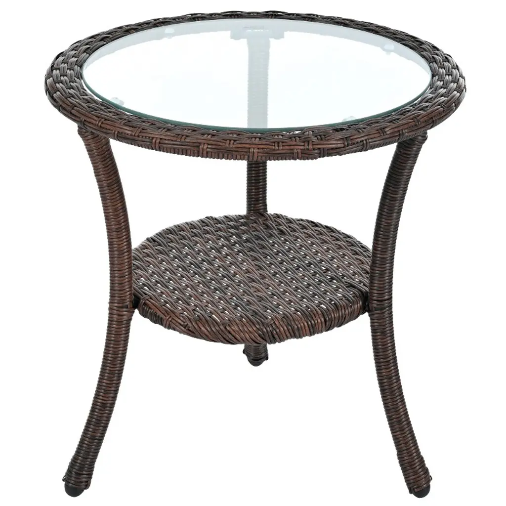 Create a cozy outdoor retreat with this elegant 3-piece wicker bistro set, ideal for patios, balconies, and intimate garden corners. The set includes two curved-back rattan chairs with plush beige cushions and a matching round table topped with tempered glass, combining comfort and style with functionality. The powder-coated steel legs offer durability and stability, while the synthetic wicker weave provides a classic look that resists the elements. Whether you're sipping coffee at sunrise or enjoying evening drinks, this compact set brings charm and relaxation to any outdoor setting.