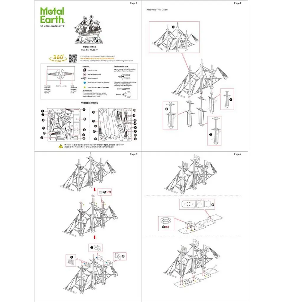 Model Kit Golden Hind Galleon (Moderate Difficulty) Steel Model Kit By Metal Earth
