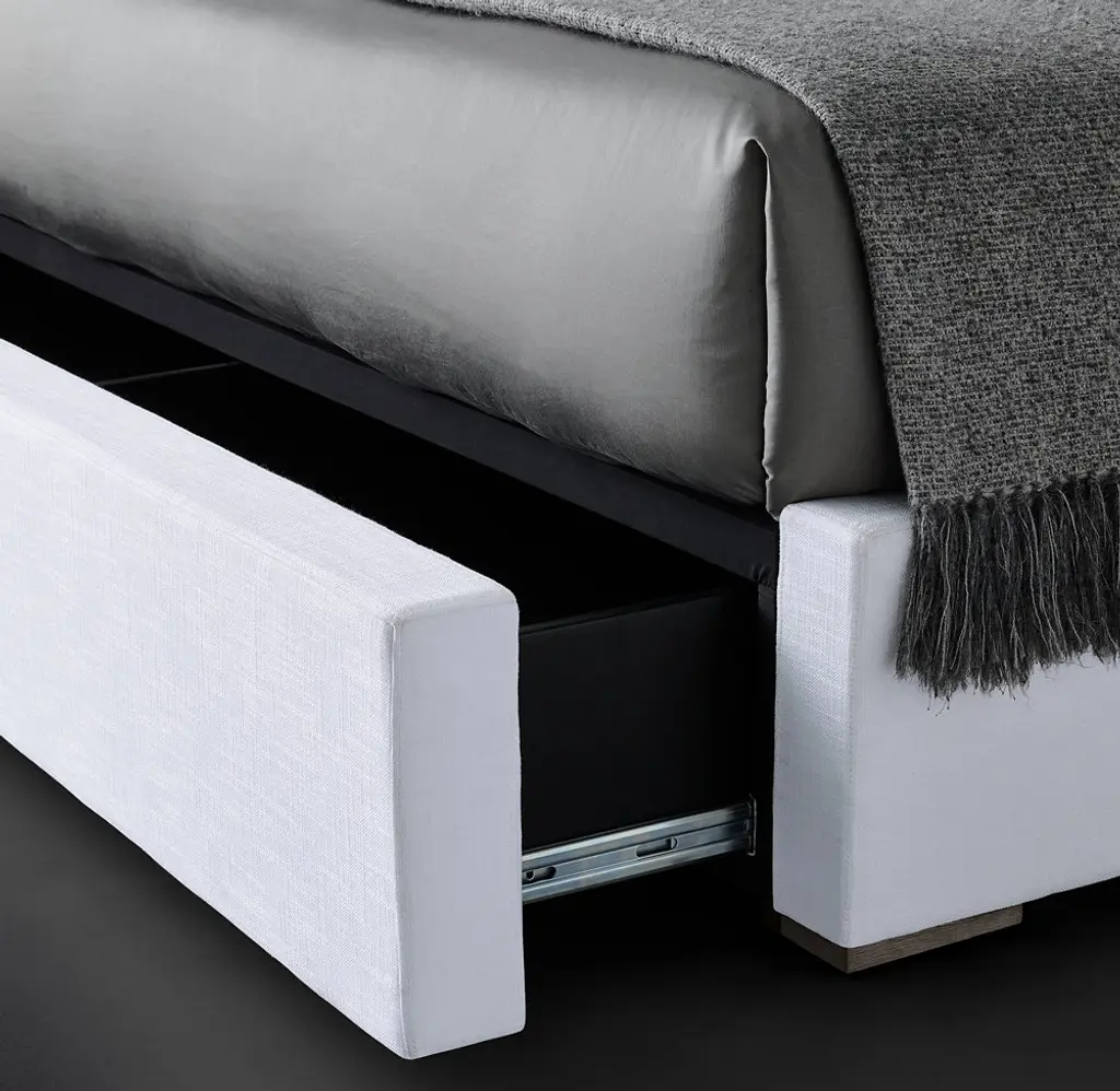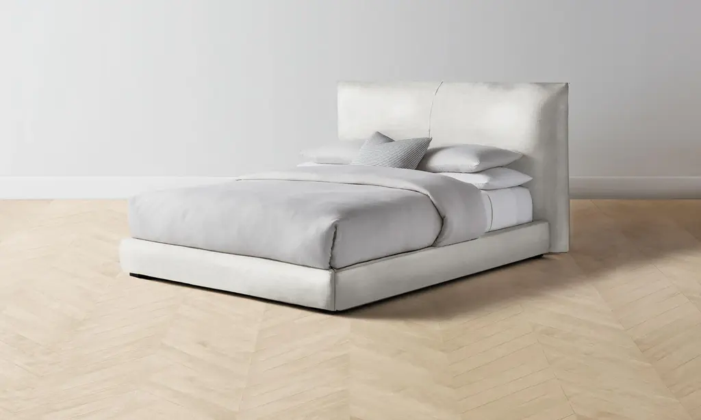 Distinguished by crisp lines and smooth contours, our sculptural platform beds are fully customizable. Create your perfect bed, down to the last detail – from headboard height and style to upholstery fabrics or leathers. Our nontufted panel bed's unadorned, hand-upholstered headboard lends elegance and luxurious comfort. Generously proportioned and available in two widths, the headboard extends on both sides to accommodate nightstands. ALSO AVAILABLE IN LEATHER SHOP THE ENTIRE COLLECTION SHOP THE FRESHBED™ SLEEP SYSTEM SHOP AIRELOOM® MATTRESSES