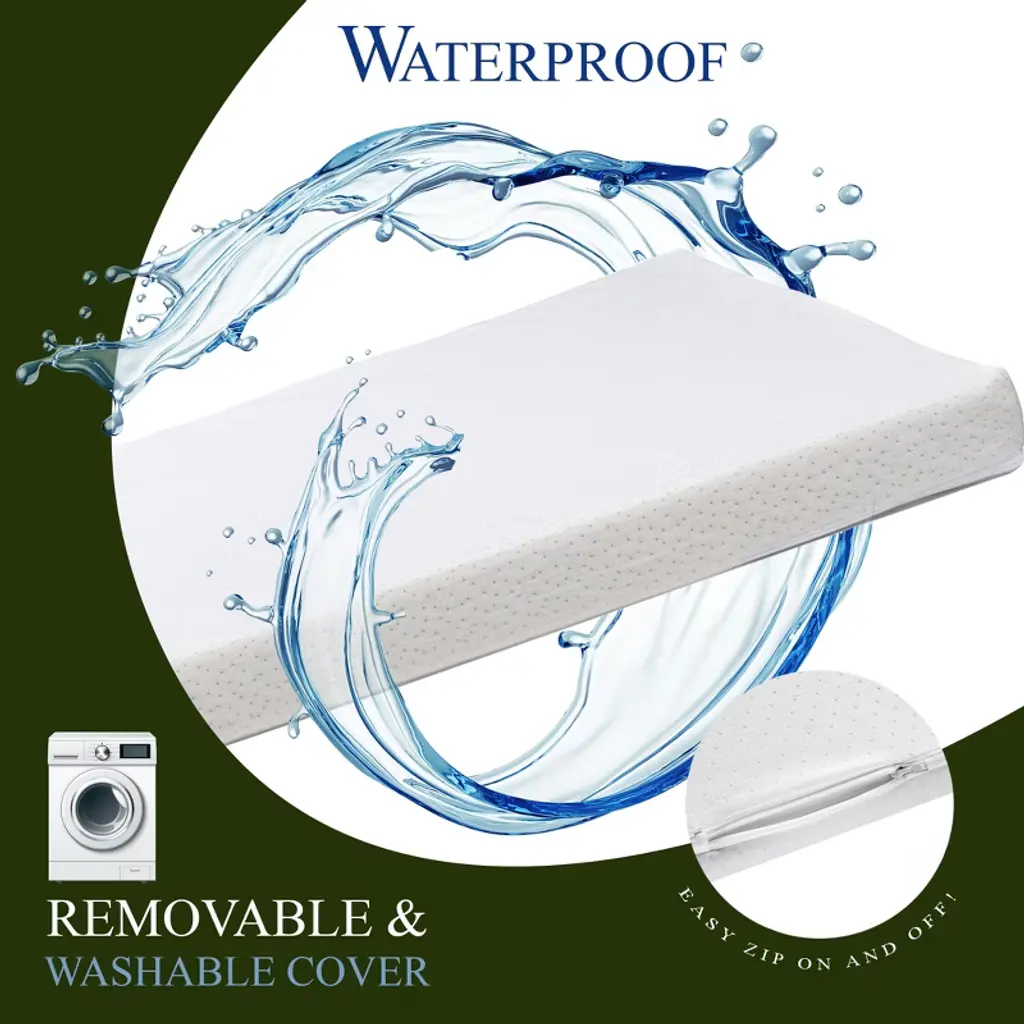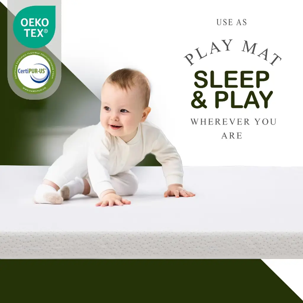 A big boost for babies’ comfort! Nothing tops off a long day of scooting, crawling, walking, and playing like a quality night’s rest. Ensure your toddlers’ dreams come true with a portable Pack n Play Topper from Modera Baby. This 1” thick, organic, ventilated foam pad fits corner to corner inside your tot’s playard bassinet (or by itself on the floor) for a more luxurious playtime or naptime experience. Meanwhile, busy moms and dads rest soundly knowing their angels are cradled in the safest organic cotton and non-toxic materials available. The dense yet breathable foam base contours to children’s weary muscles, so there’s no more tossing and turning throughout the night. And never worry about an accident ruining the portable bed or play space underneath. In addition to its soft hypoallergenic fabric, the removable cover is 100% waterproof and machine washable for your convenience. Other pads, pillows, and blankets may promise the world, but nothing comes close to baby sleeping on a cloud. Preserve every precious wink—add a Modera Baby Pack n Play Topper to your cart today!