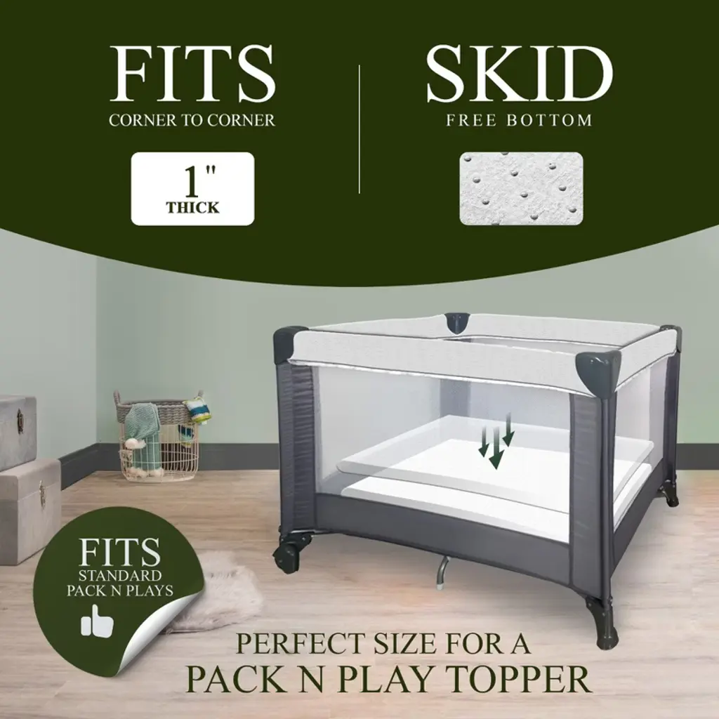 Modera Baby Organic Cotton Ventilated Memory Foam Pack N Play Topper - 41"x29"x1"