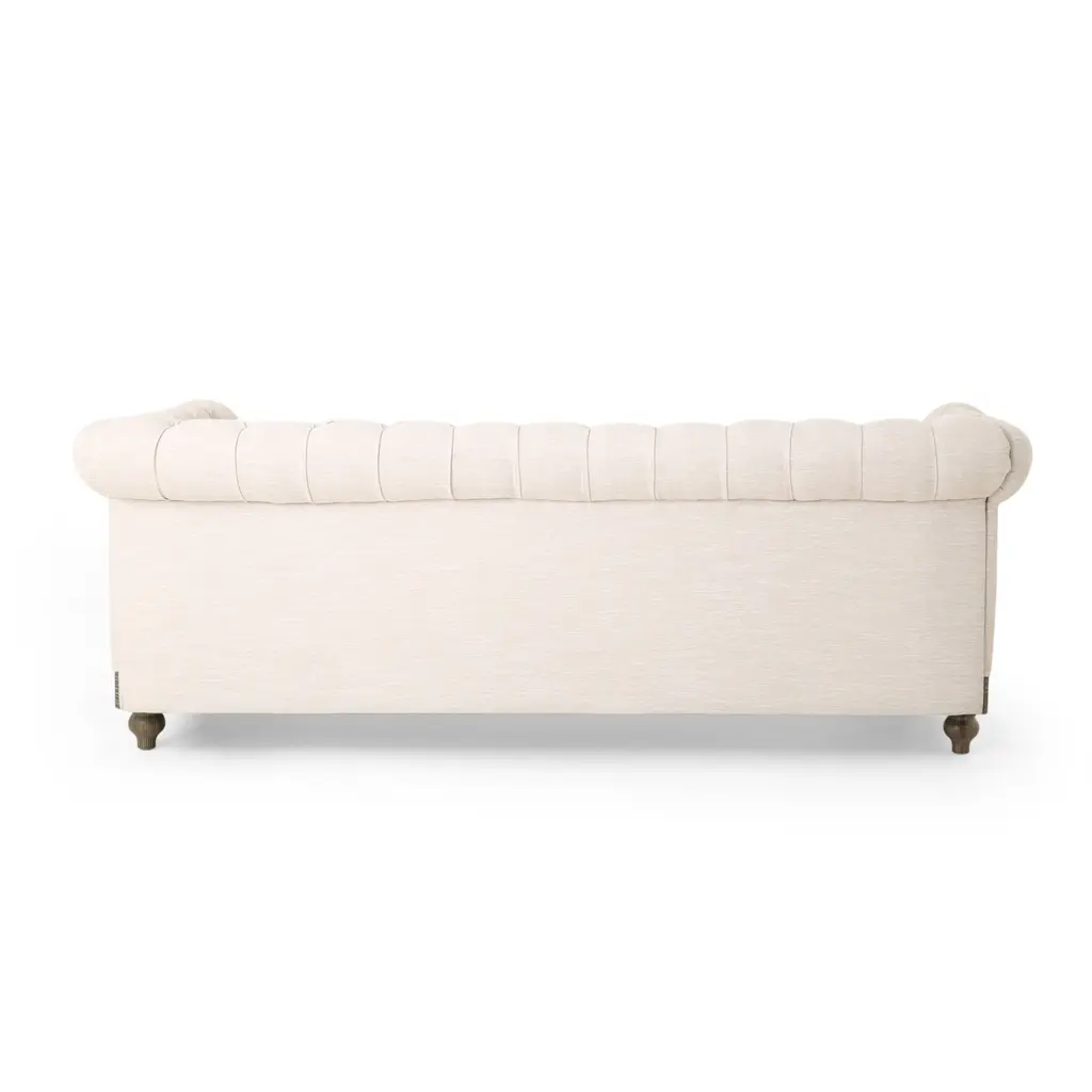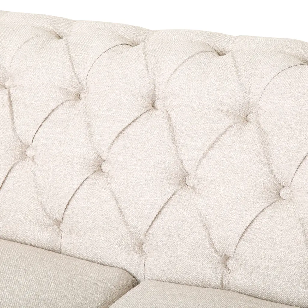 Modern 2 Seat Upholstered Arm Couch, Tufted Backrest Sofa With Nailhead Decoration And Wood Legs For Living Room - Beige