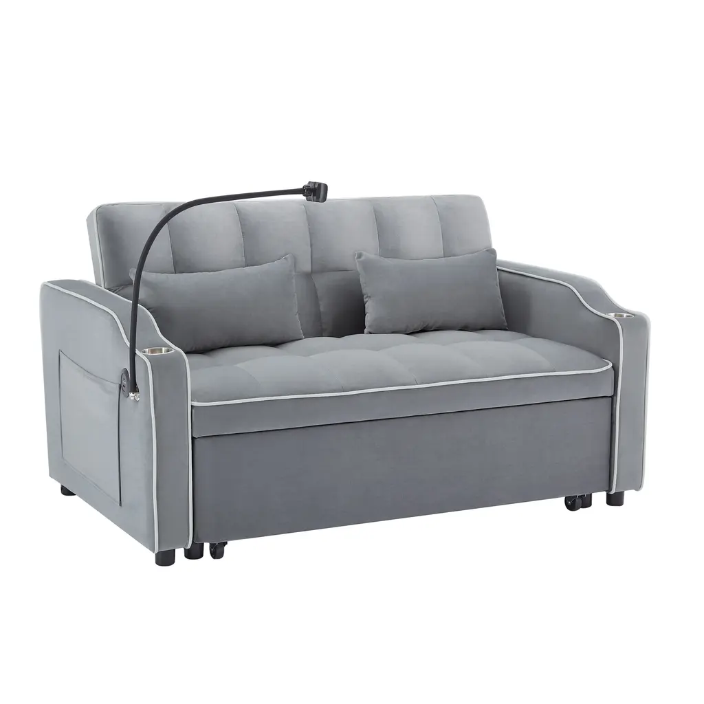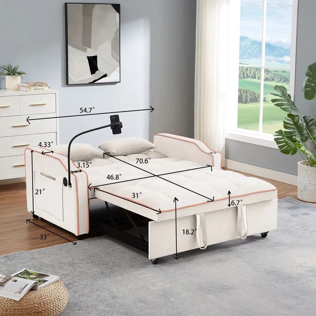 Modern 54" Loveseat Sofa With Pull-Out Bed & Adjustable Backrest, Convertible Loung Couch With Usb Charging And Phone Stand - Beige