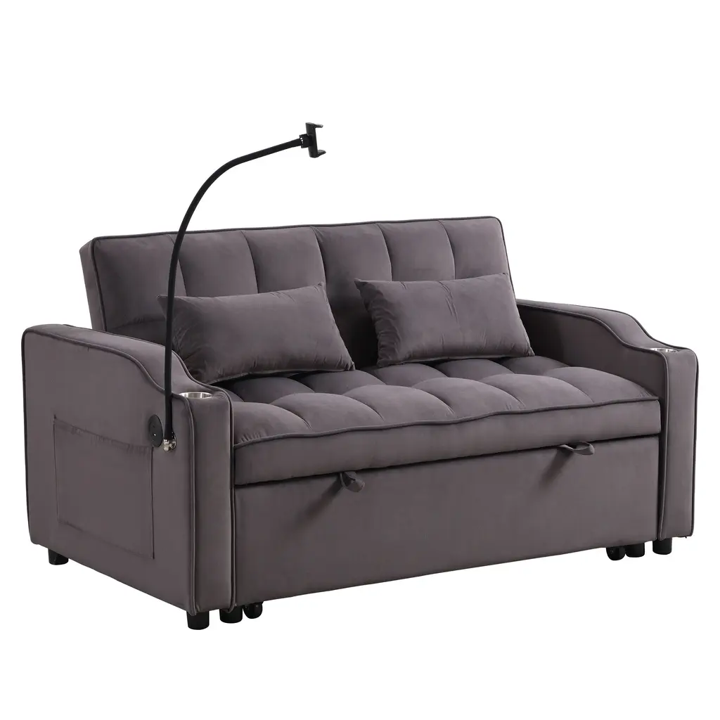 Modern 54" Loveseat Sofa With Pull-Out Bed & Adjustable Backrest, Convertible Loung Couch With Usb Charging And Phone Stand - Black