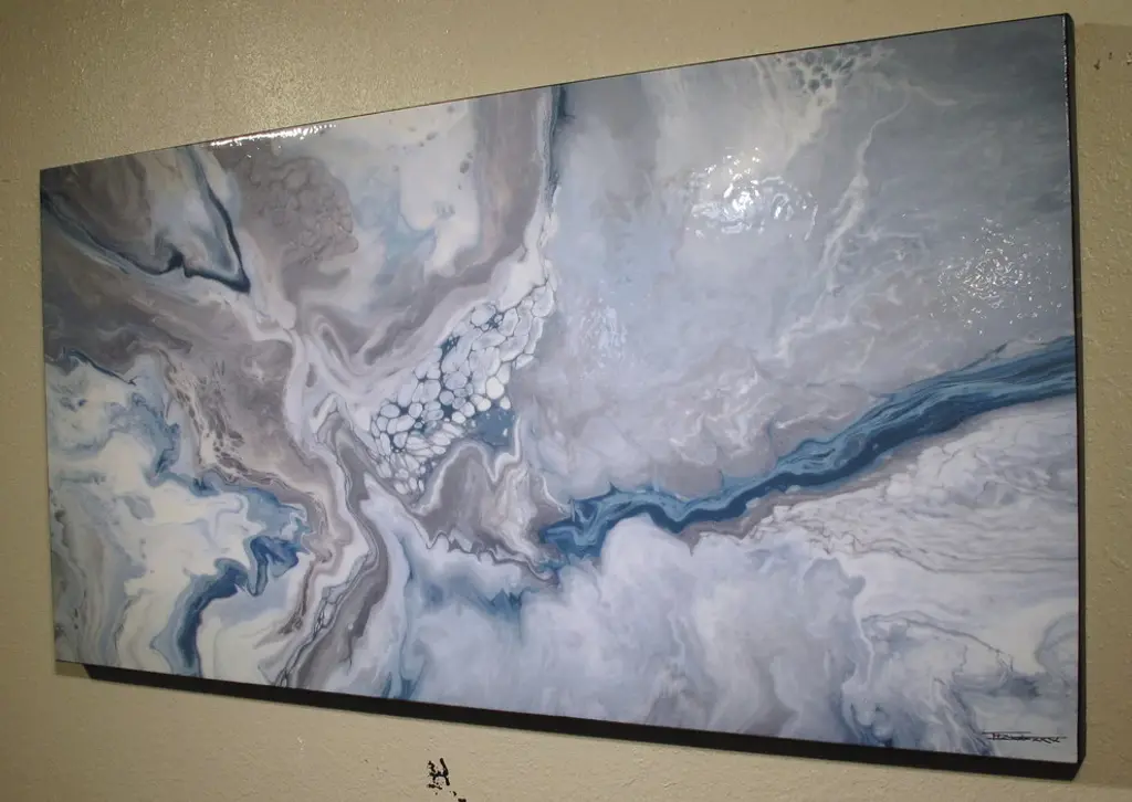 ICE DANCER - 60 x 30 x 1.5 inchGorgeous Textural Resin coated Limited Edition Giclee on Canvas.Ready to hang, edges finished black. Signed on front bottom right and signed and numbered on back.Comes with Certificate of Authenticity.Shades of metallic silvers, grays, blue-teals, baby blues, and creamy whites. Gallery Value of $1950