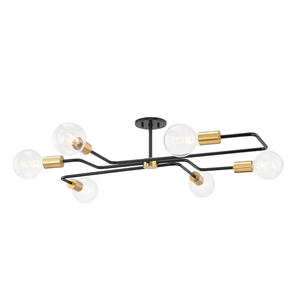Modern Black 6-Light Sputnik Ceiling Semi Flush Mount Lamp - Black