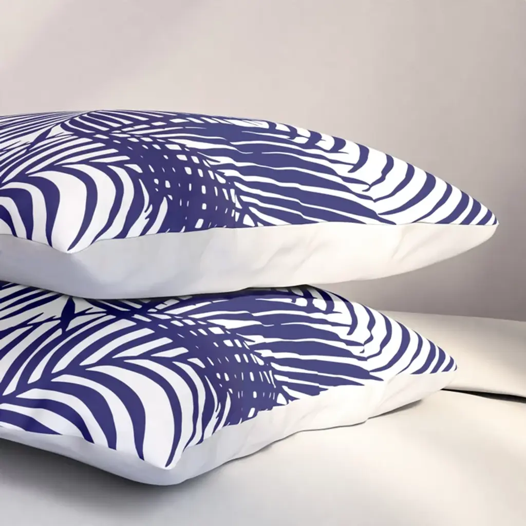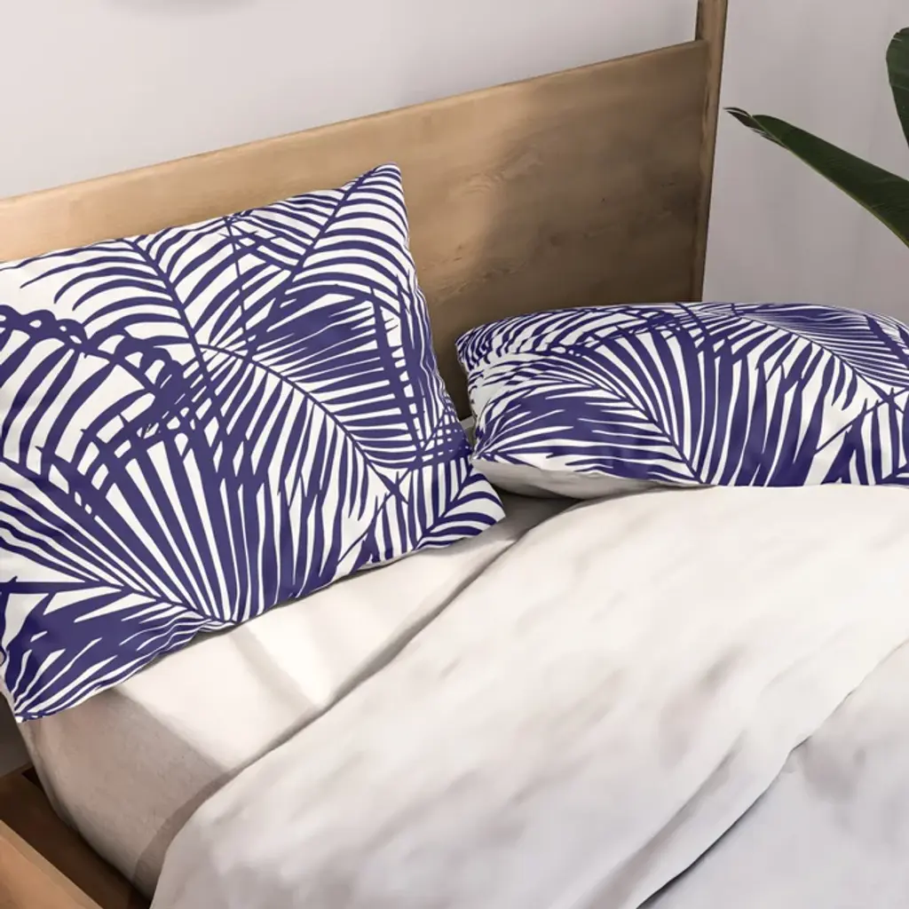 Modern Blue White Tropical Palm Trees Pattern Pillow Sham