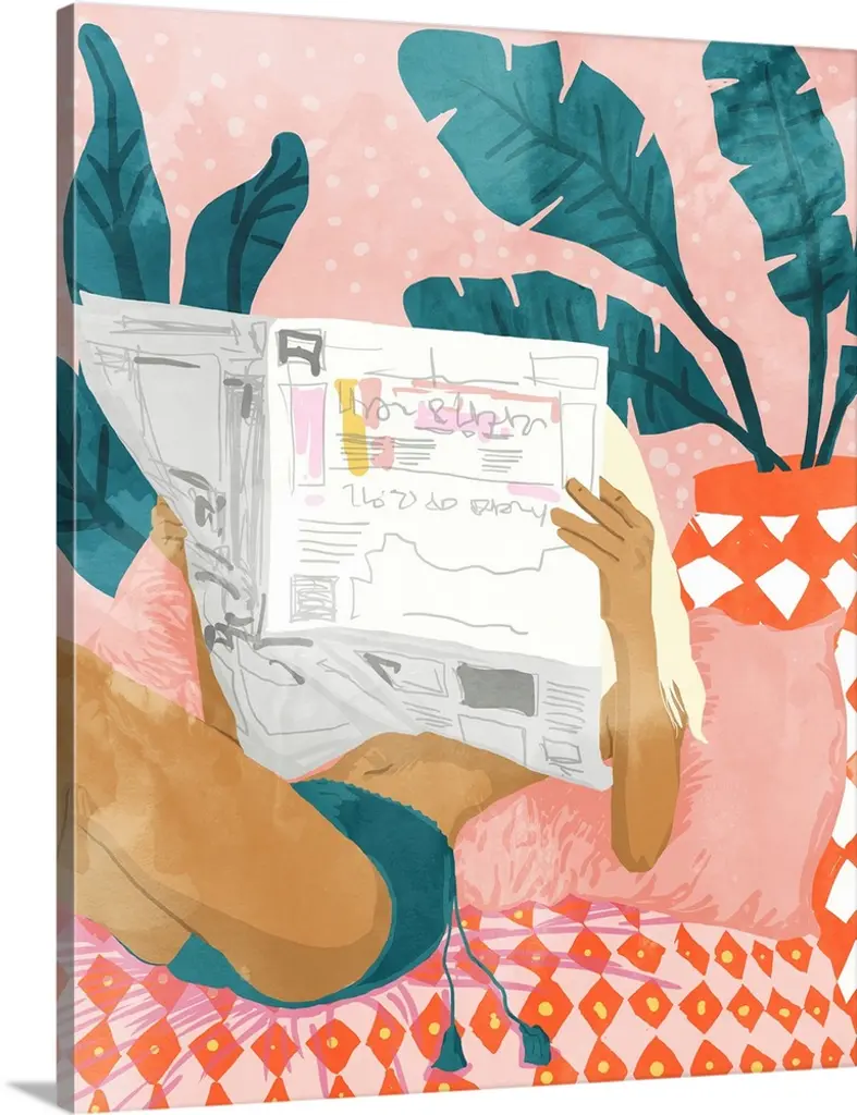 Modern Bohemian Morning Newspaper | Tropical Banana Leaves Palm Watercolor | Boho Woman & Decor Metal Print
