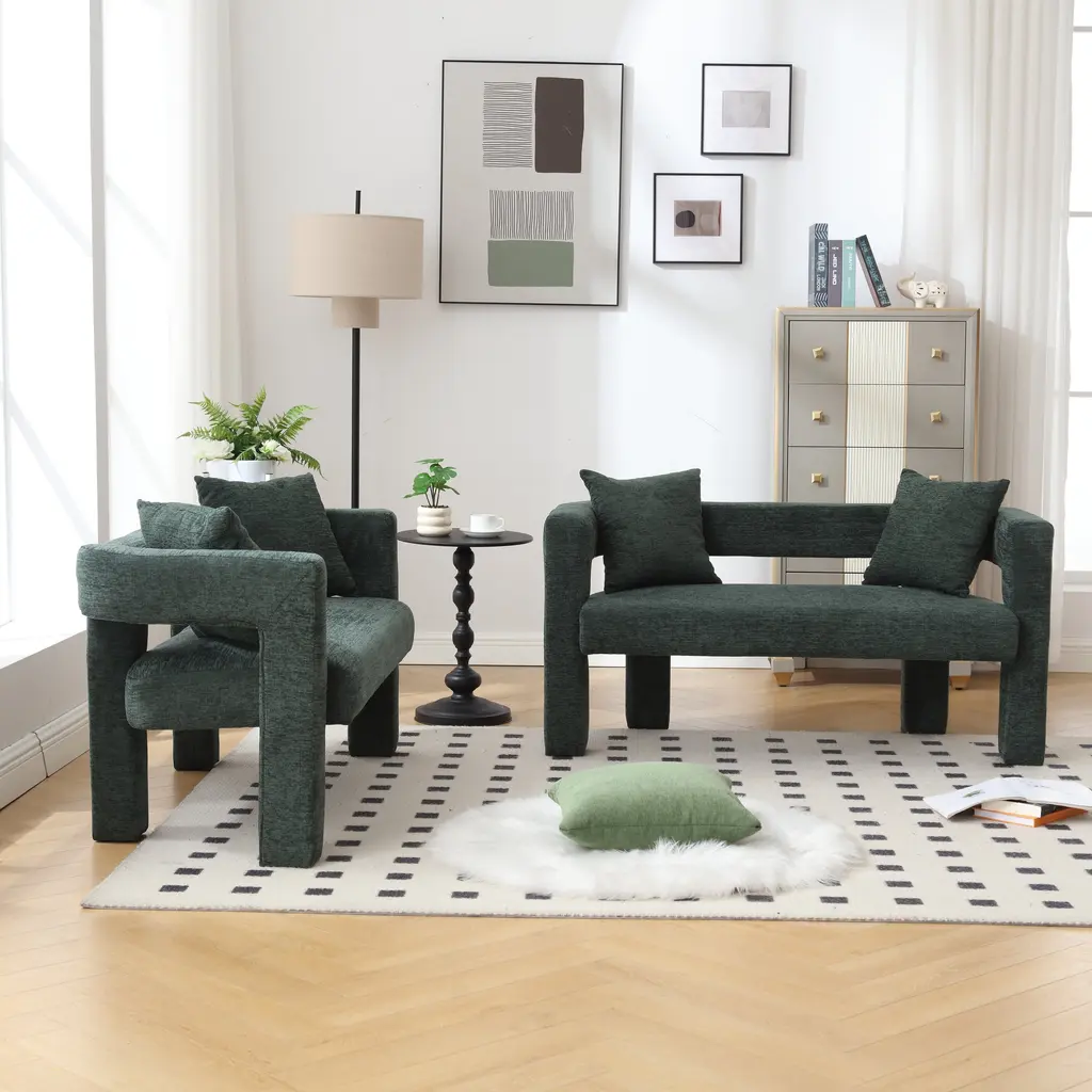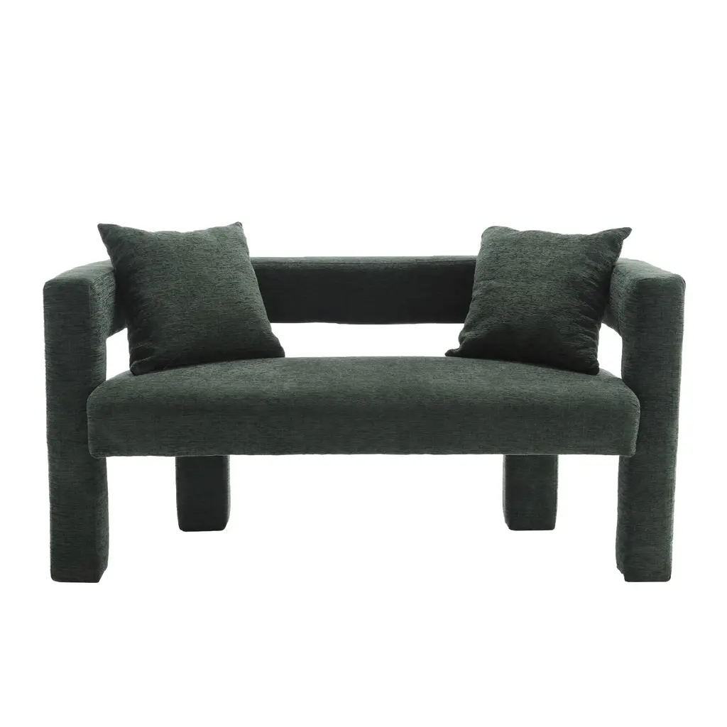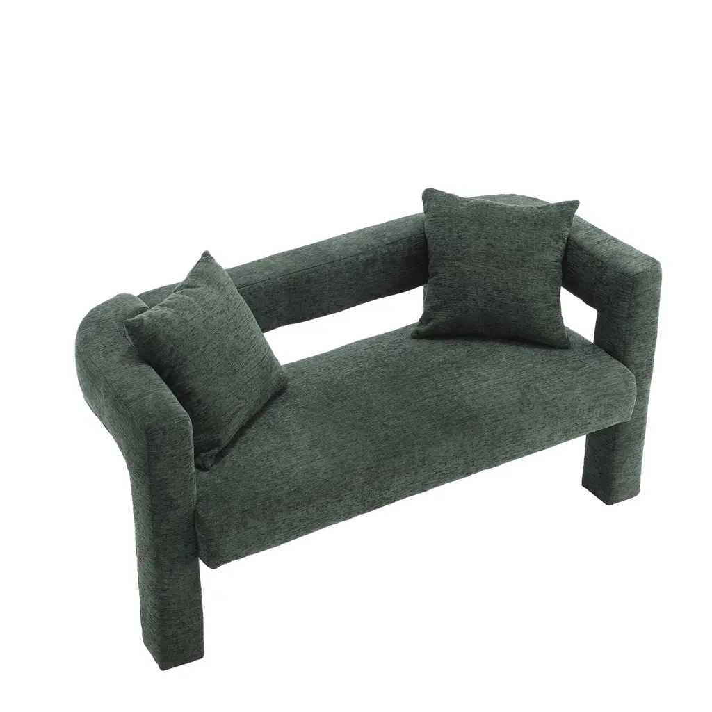 Modern Chenille Double Sofa, Comfortable Cushioned Small Sofa, Suitable For Living Room Bedroom, Leisure - Green