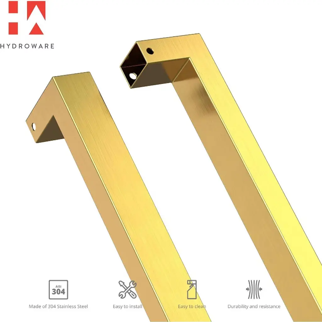 Modern Contemporary Long Stainless Steel Push Pull Door Handle For Home Entrance Glass Shower Wooden Barn Square Series - Gold - 36-inches